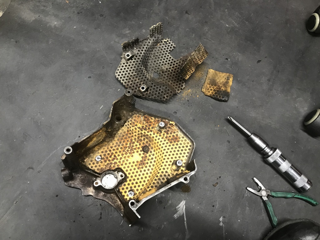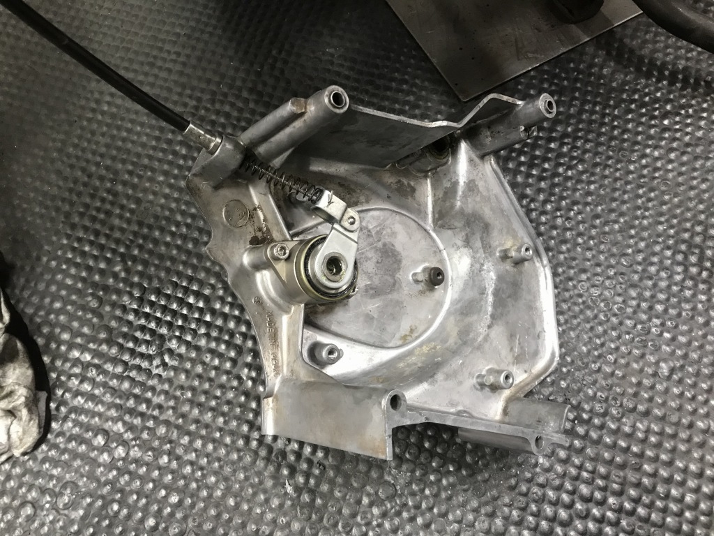スプロケカバーは、内側のスポンジが劣化してボロボロなのでスポンジを撤去します。