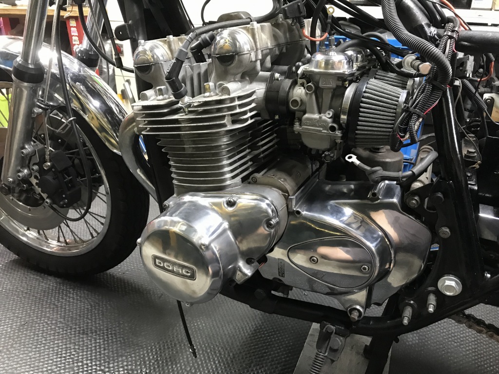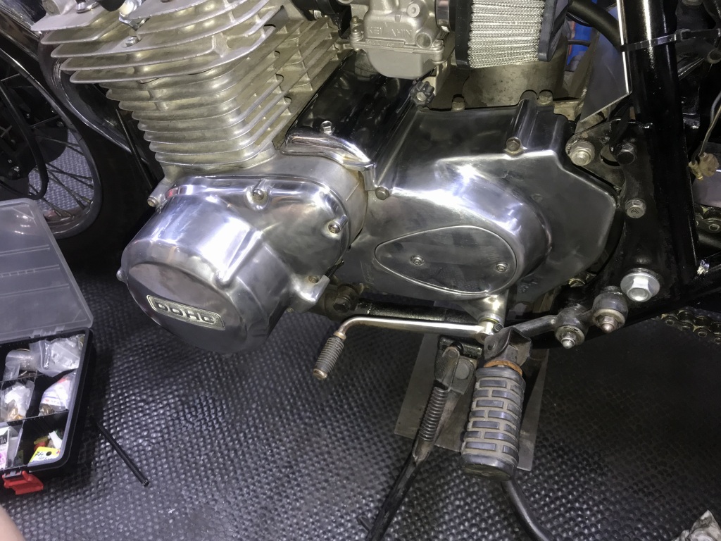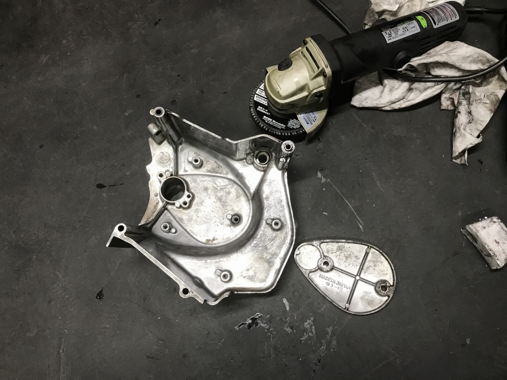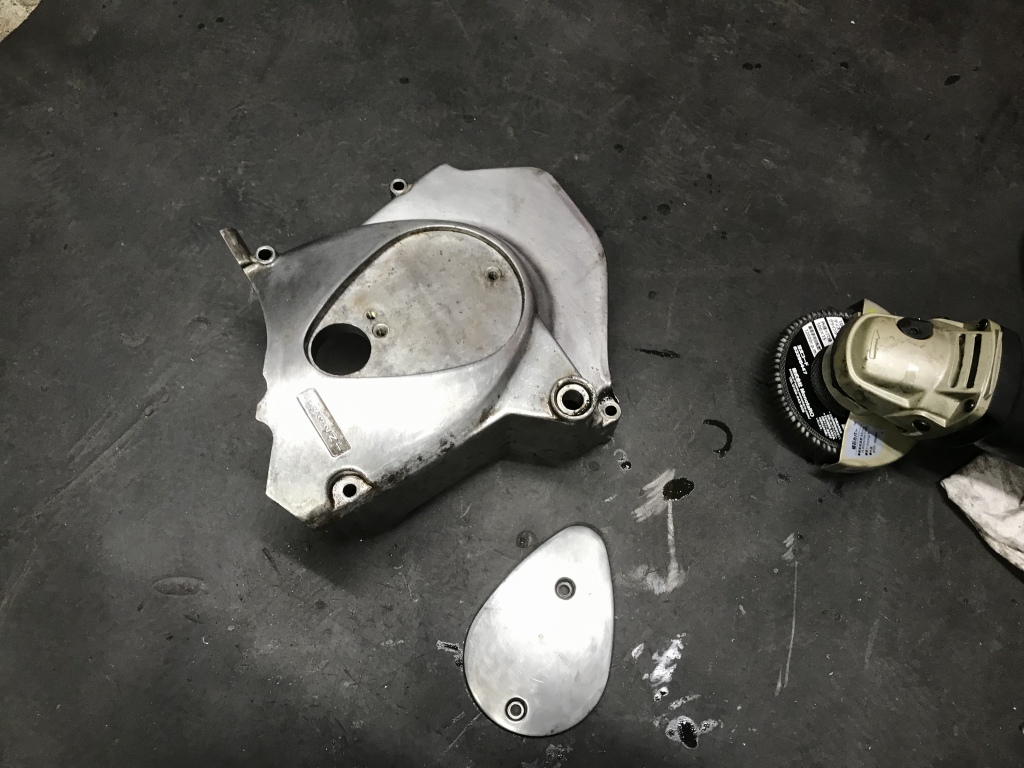 フォークアウターに続きエンジンカバーも大まかにポリッシュします。