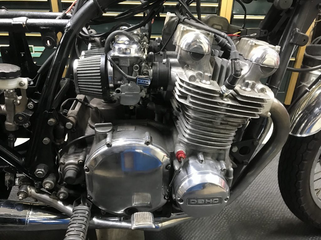 キャブ後方隔壁も取り付けます。サイドカバーをZ1化する予定なので、エンジンマウントを逃げた形状のZ1用を取り付けます。