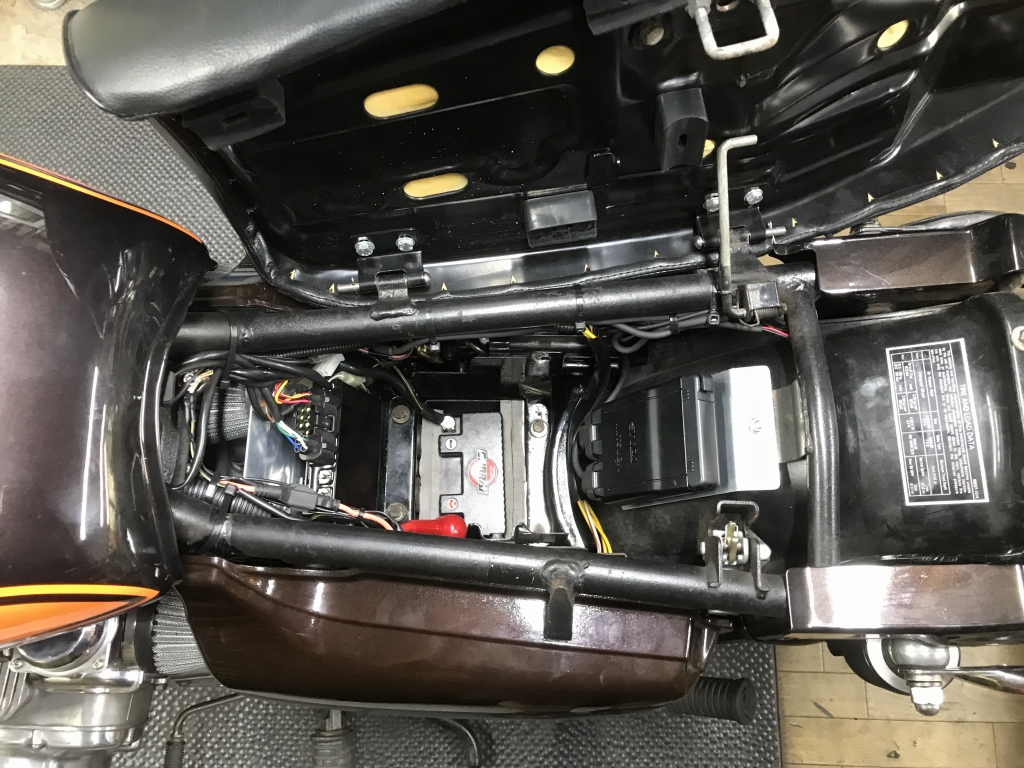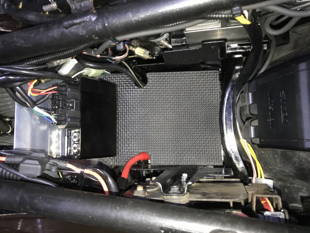 バッテリー上はこんな感じ。2つのユニットを移設したので大きなラゲッジスペースが生まれました。