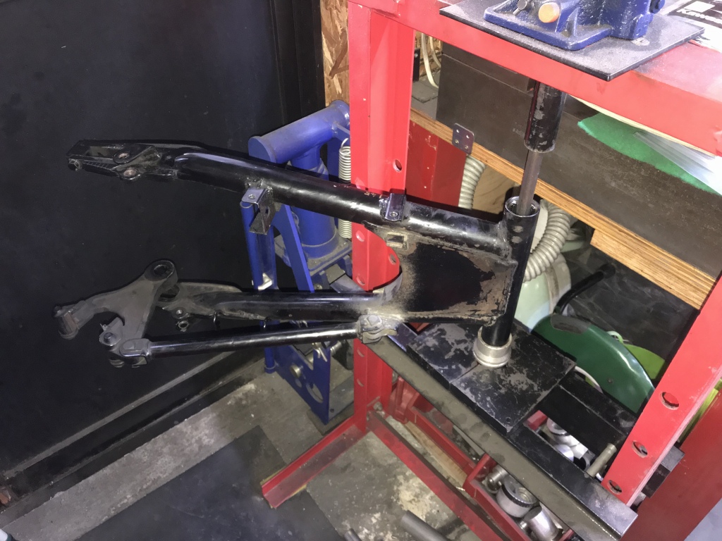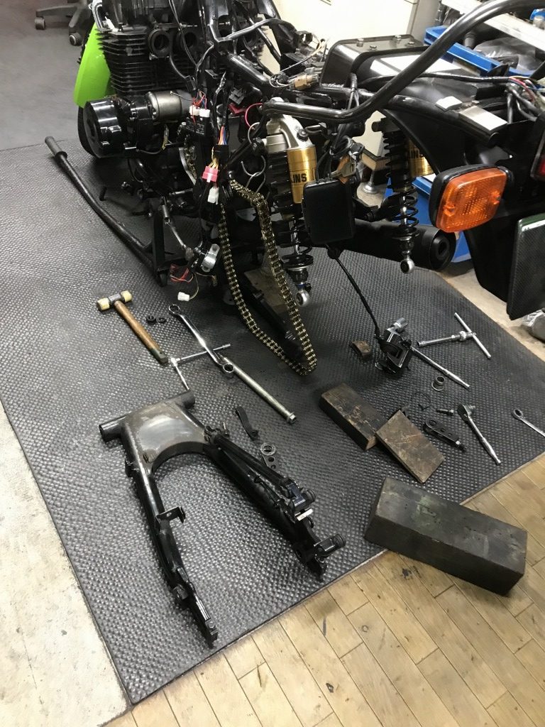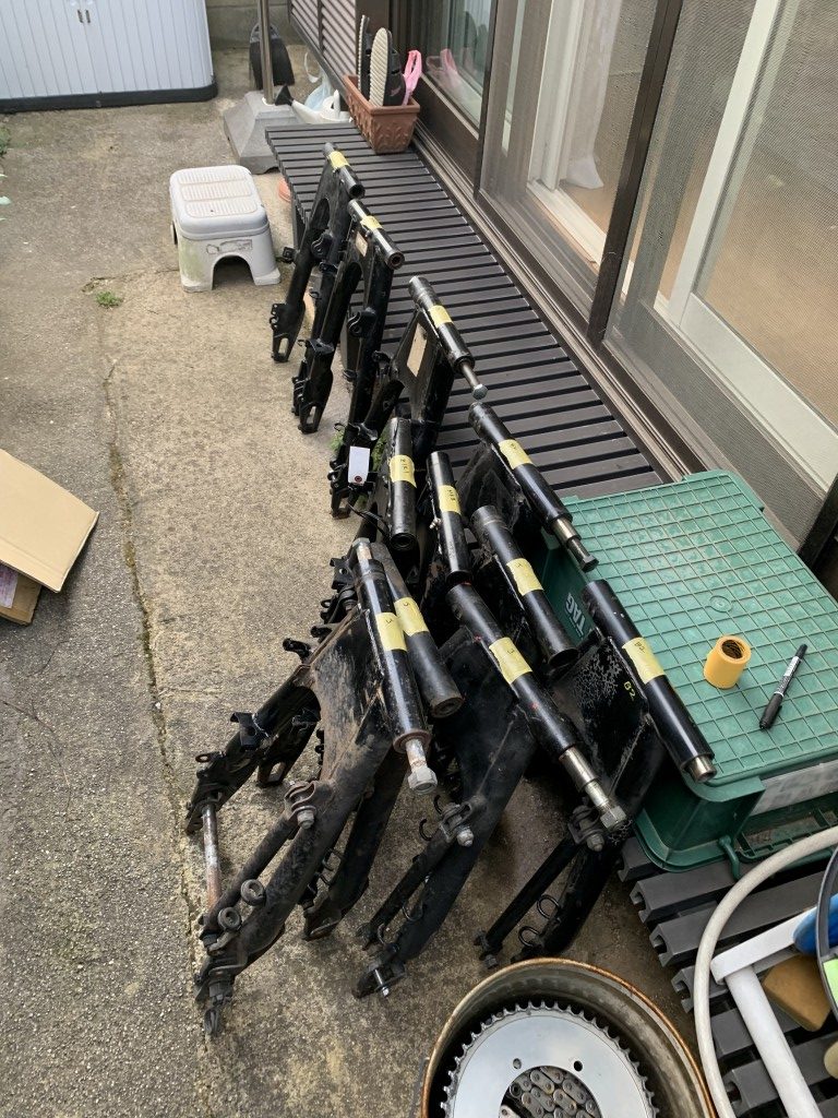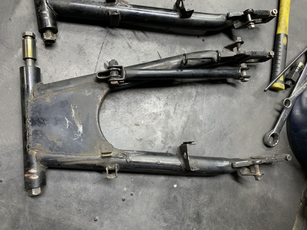 スイングアームは交換することになり、ストックからいいものを選び出します。