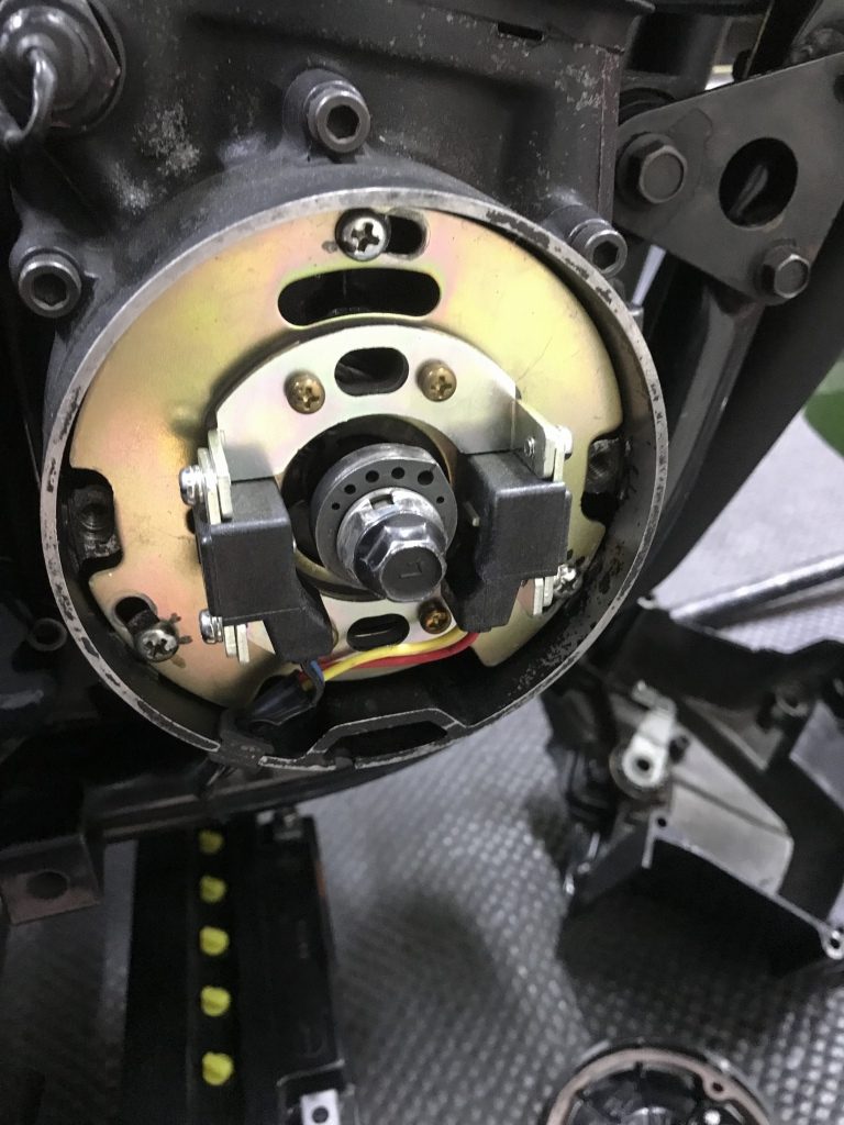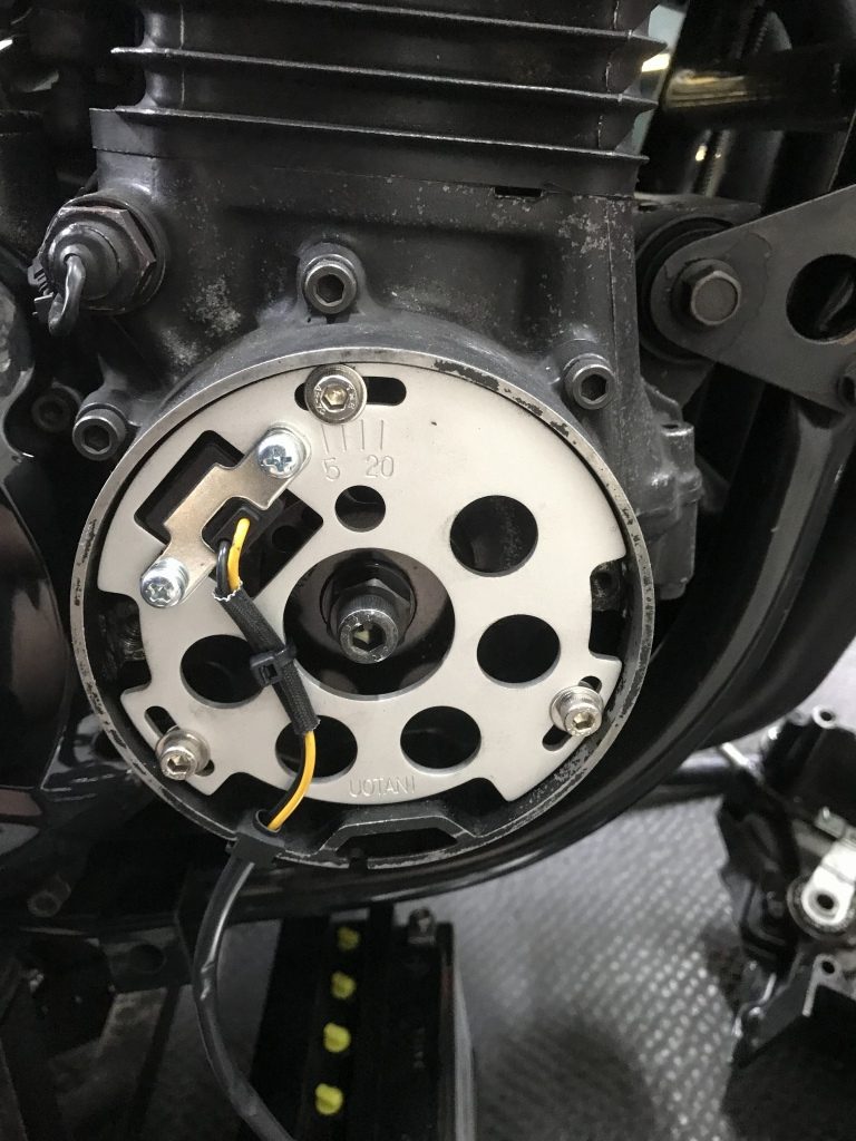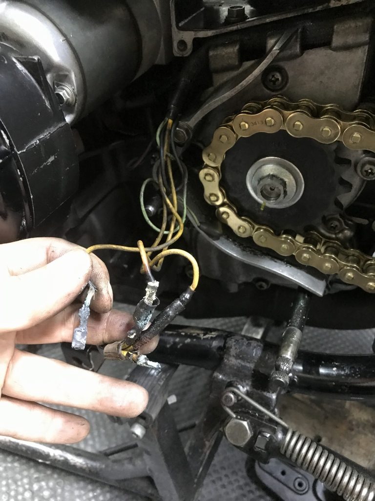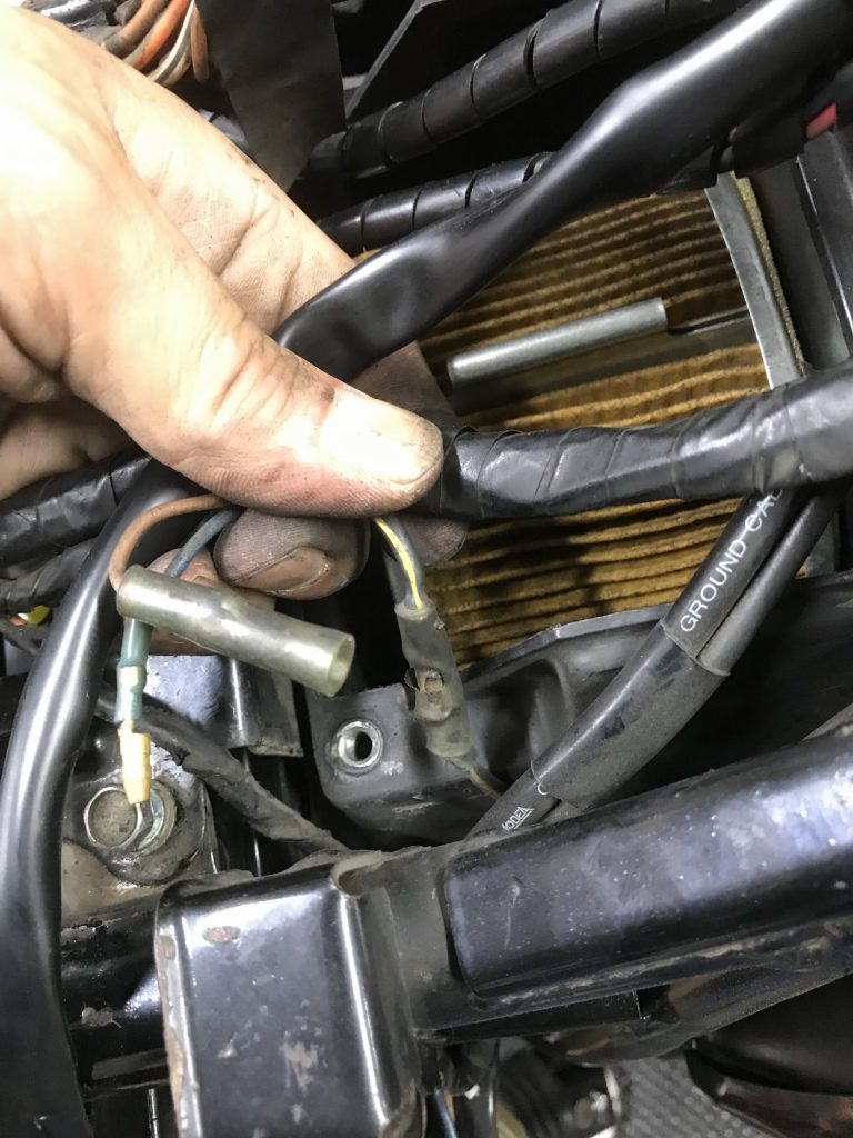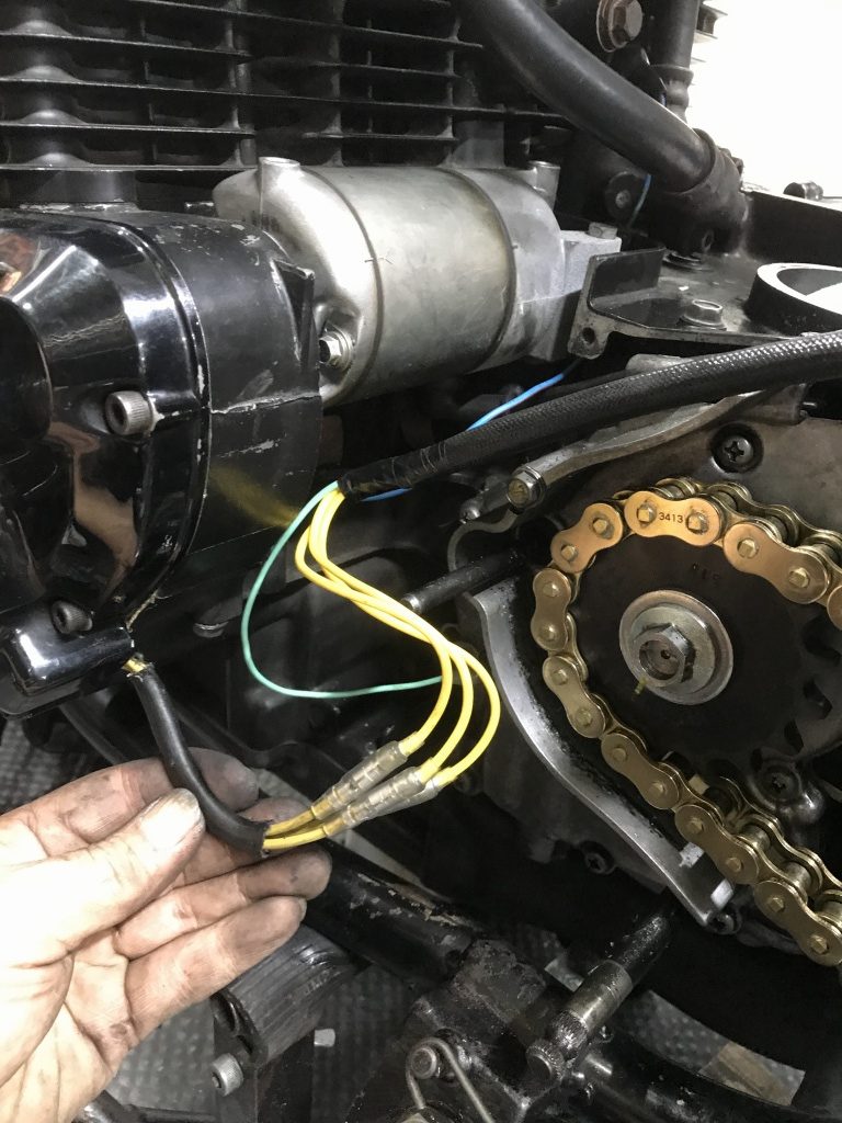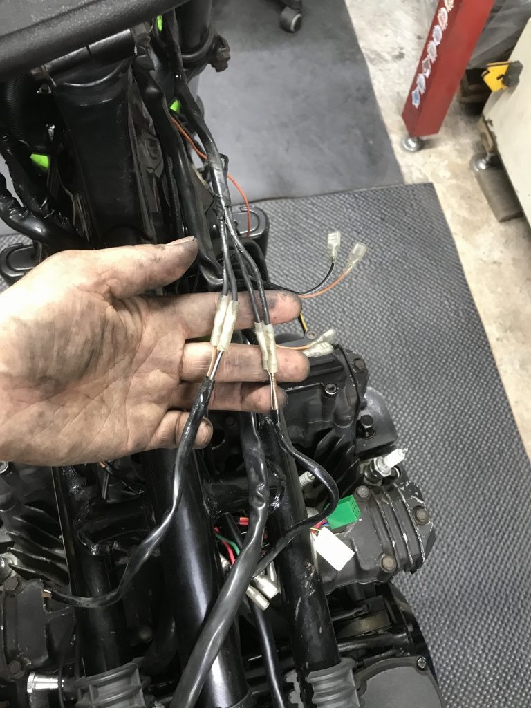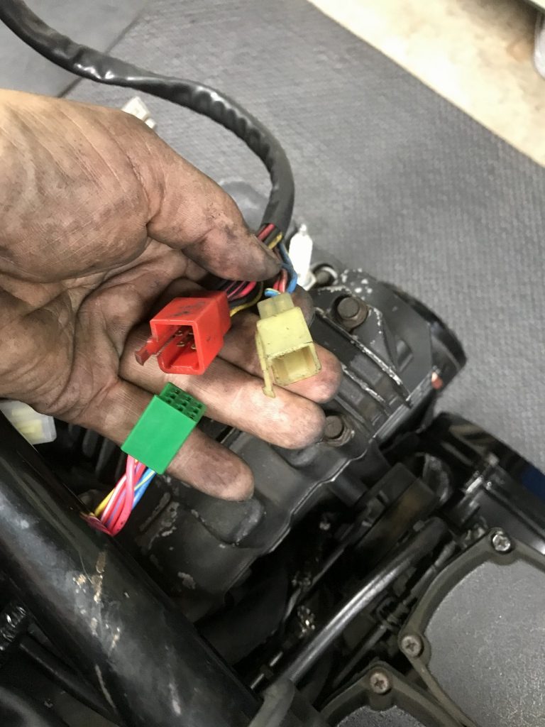 追加のアーシングは不要なので、全て外します。こちらはヘッドのエンジン温センサーのネジに接続されていたもの。