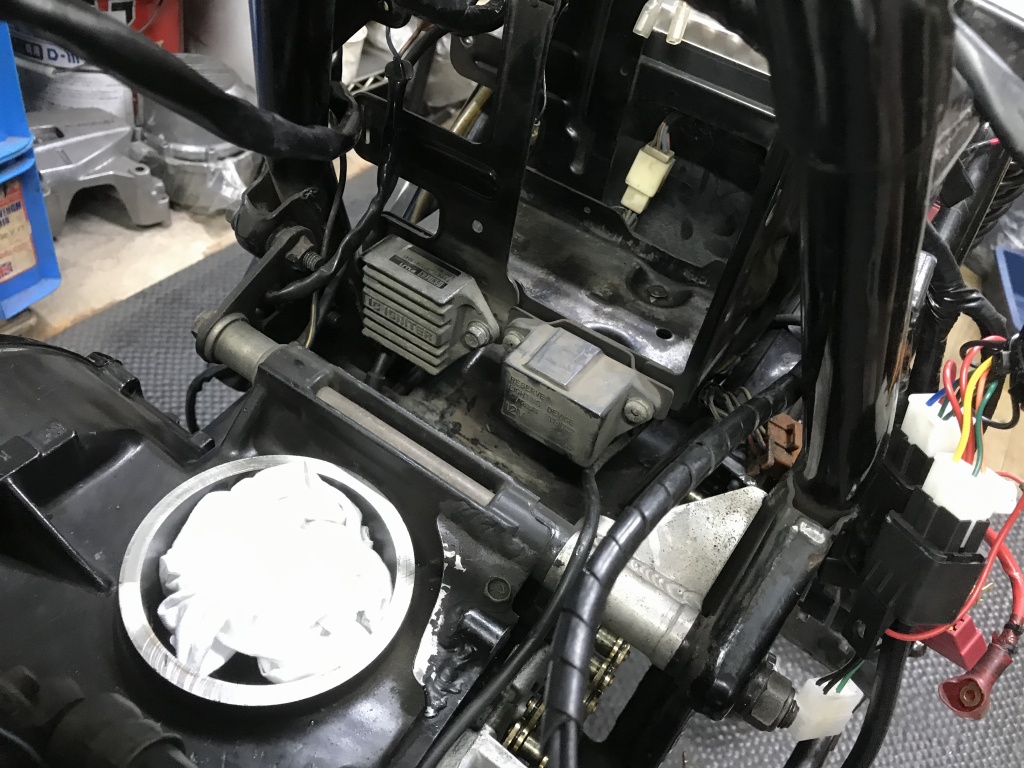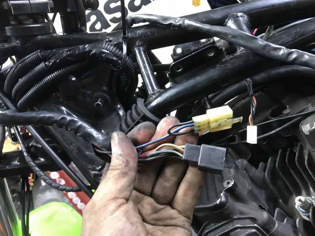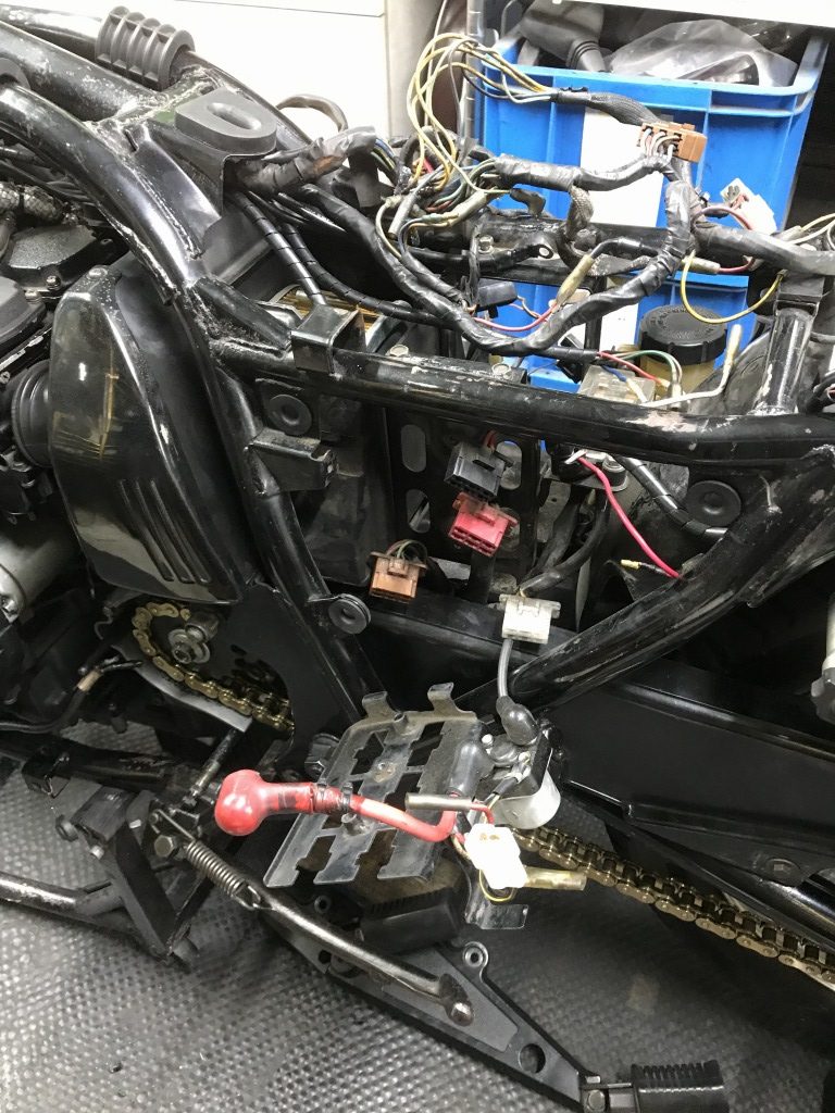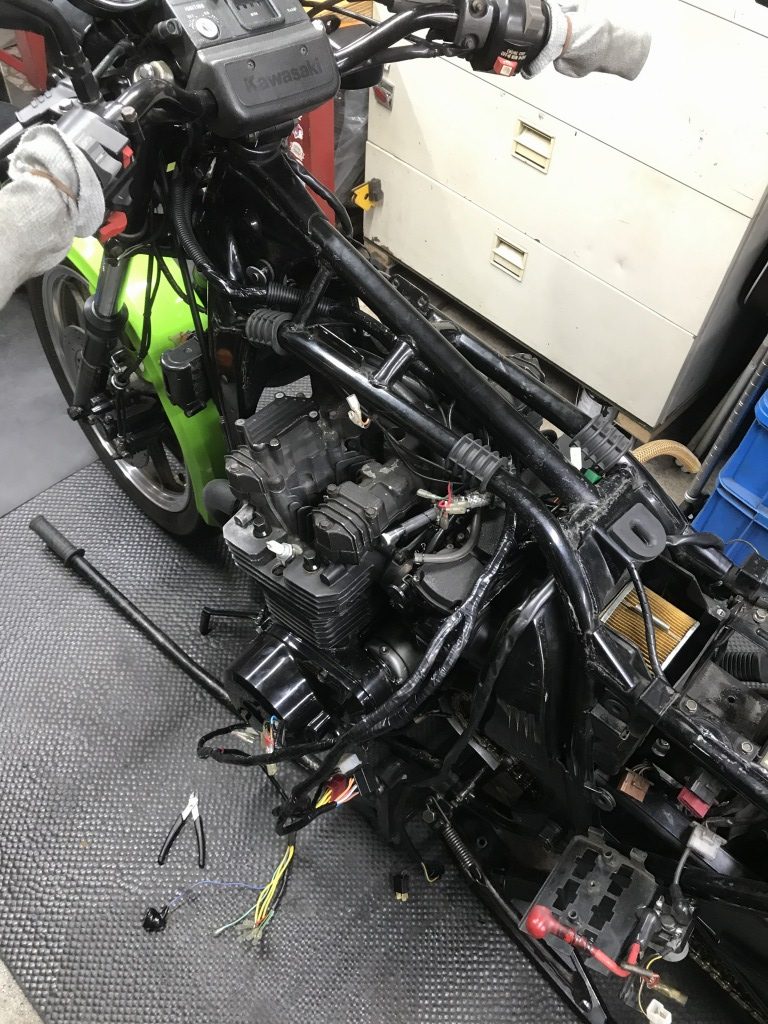 前回は時間が無かったので車検だけでしたが、今回は全体的に点検します。先ずは、ストリップにしてメインハーネスを外していきます。