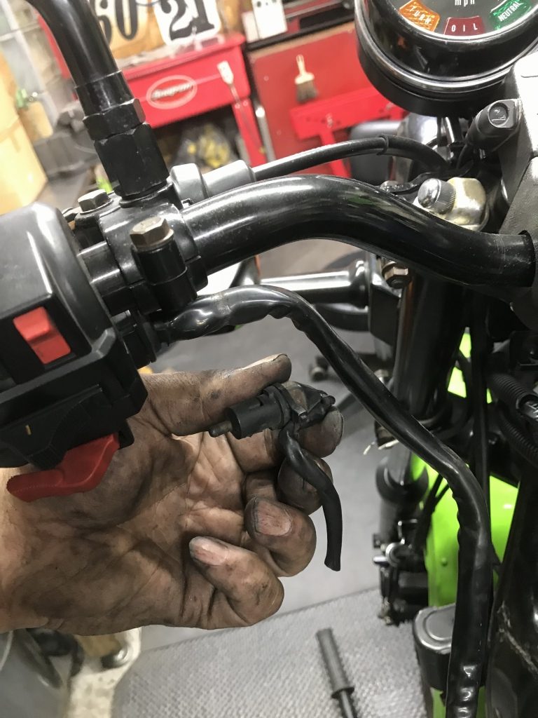クラッチレバーのところにある、スターターロックアウトスイッチですが、抜いて使っていなかったのでこの際きれいに撤去します。
