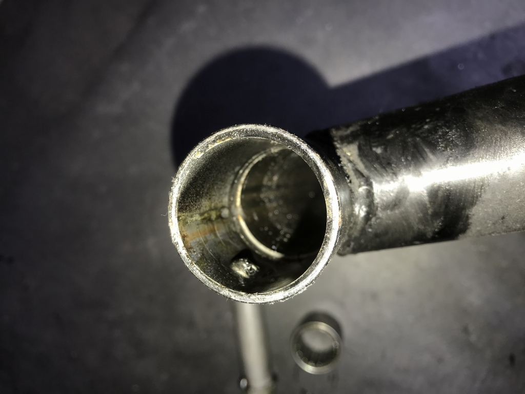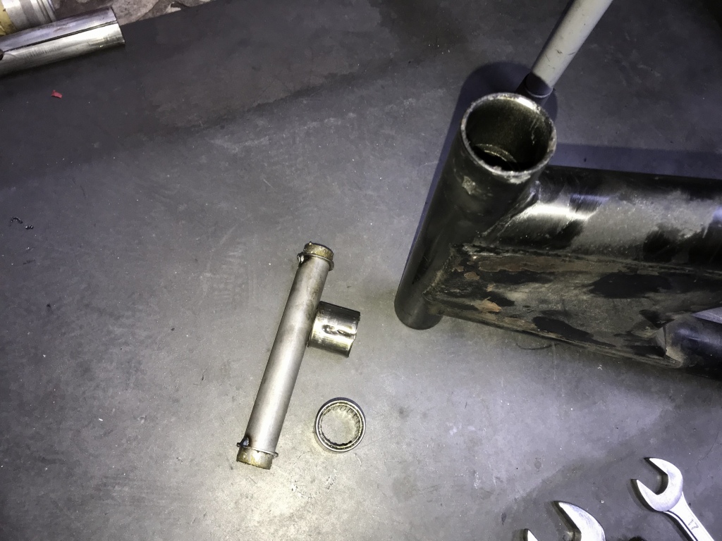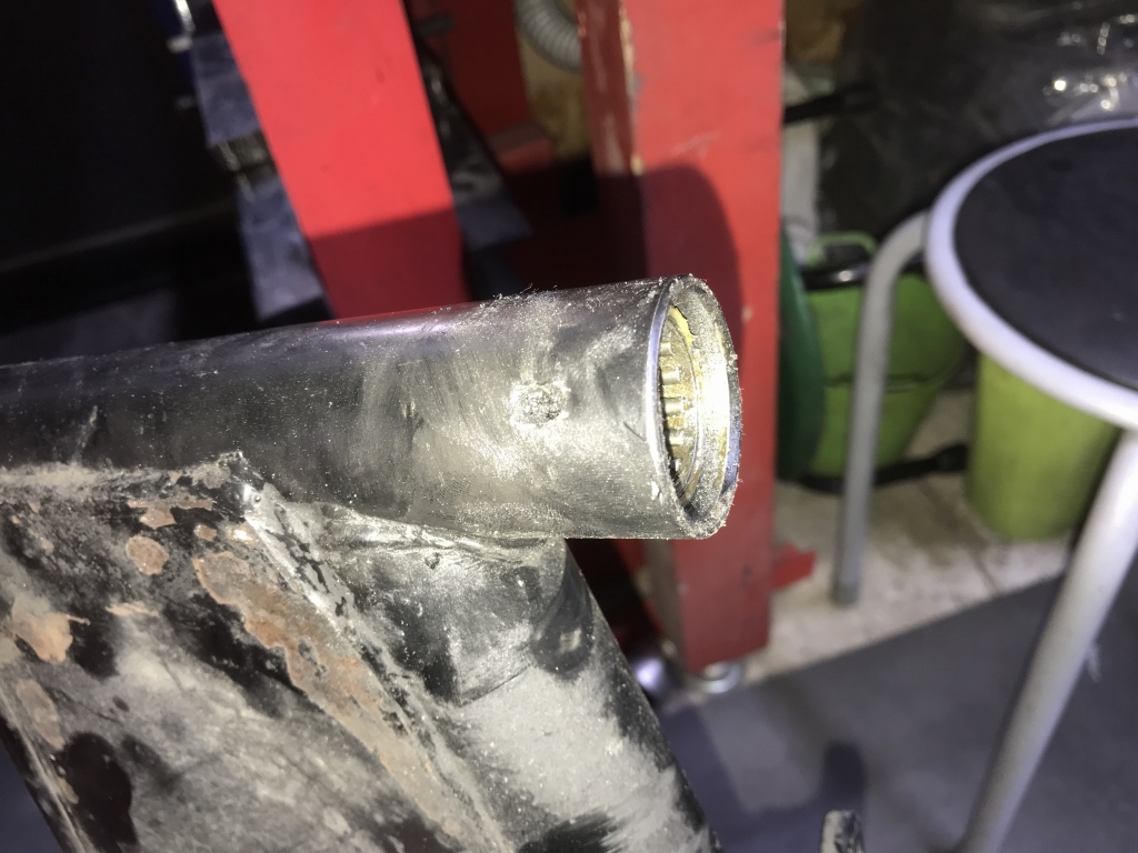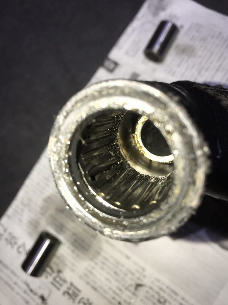 スイングアーム側は、内部に大きな突起ができています。これがベアリングを破損させたのです。