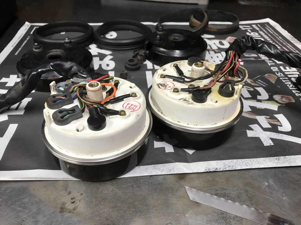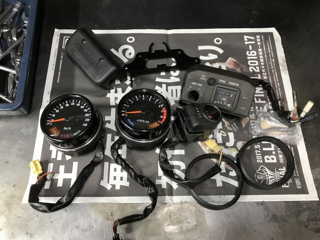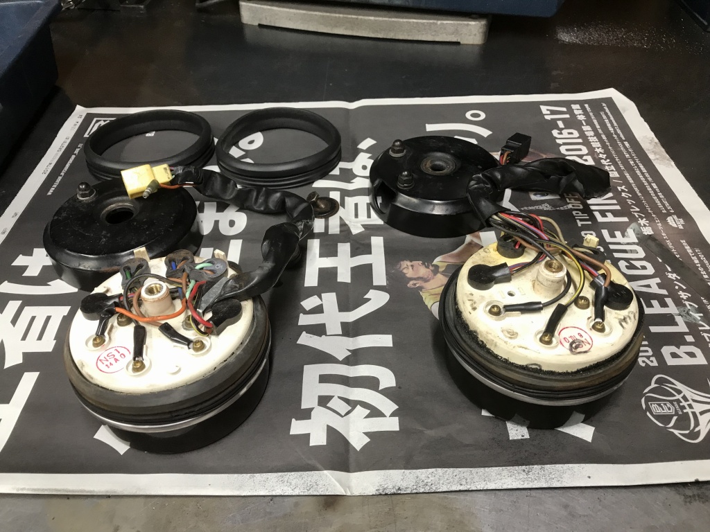 オーナーさんお持ち込みの、丸メーター関係一式はこちら。これらを取り付けます。