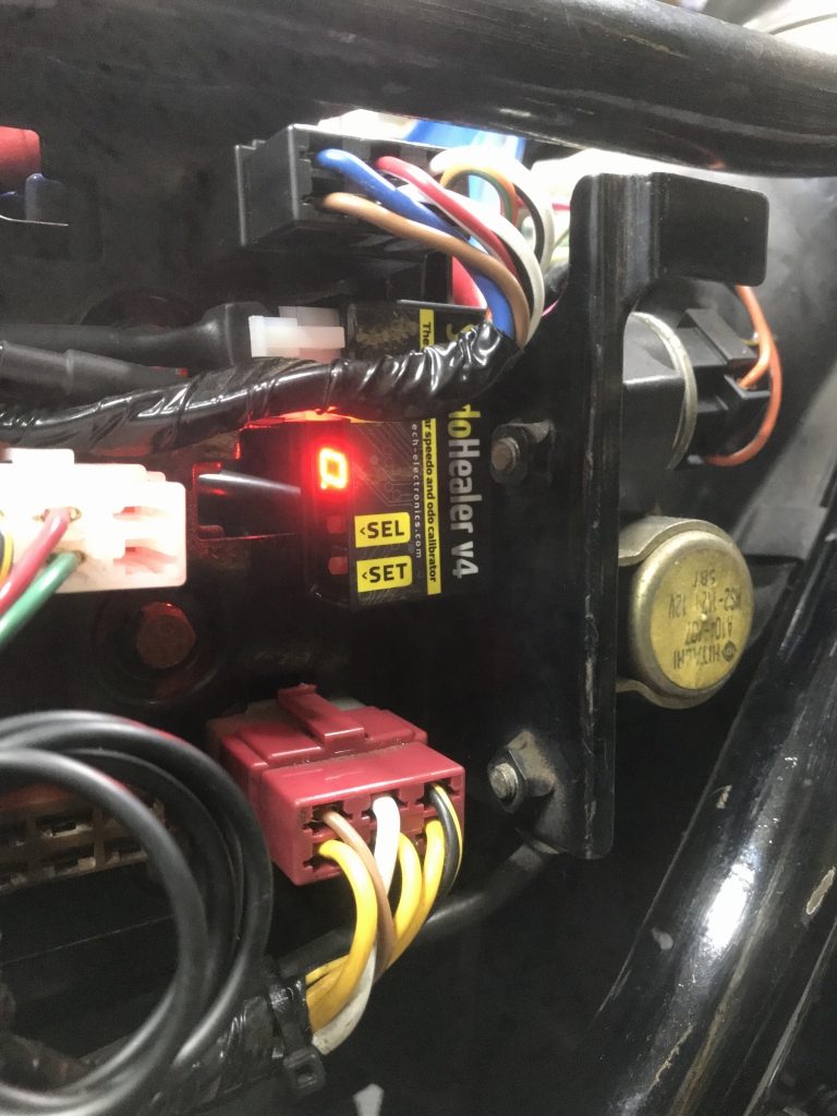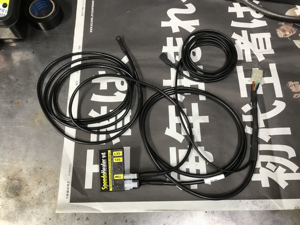 スピードセンサーとスピードヒーラーを接続します。あとはこれをオドメーターに接続するだけです。