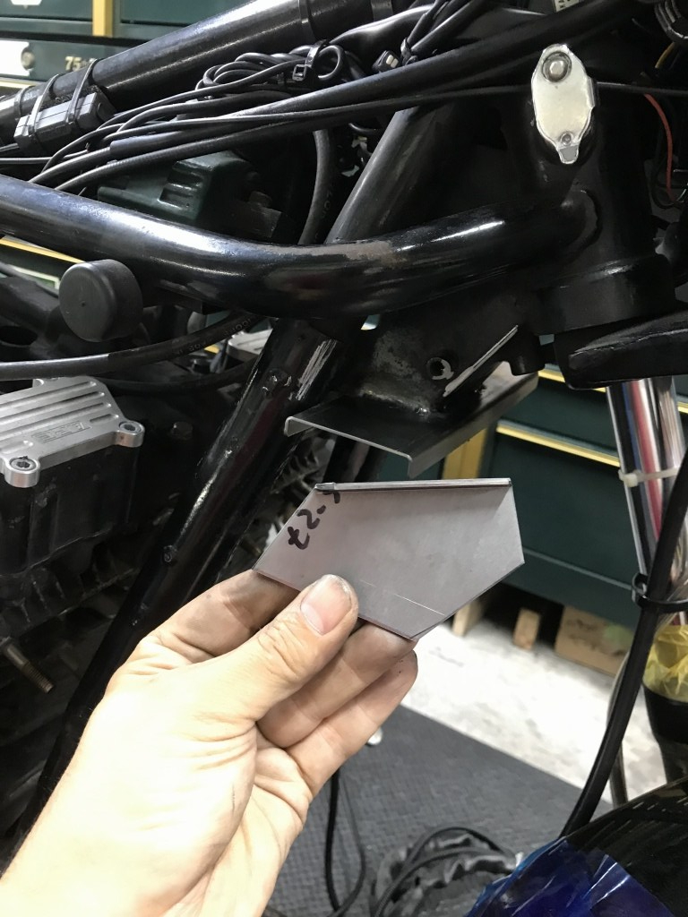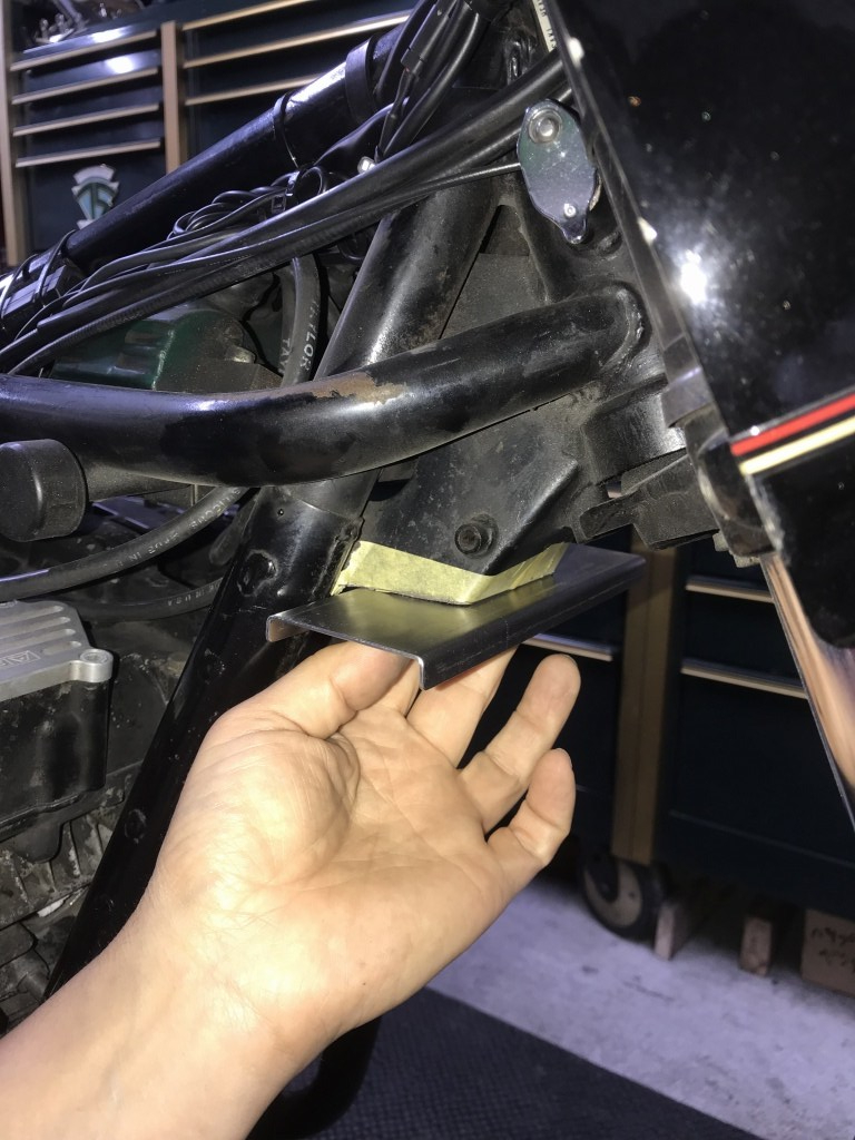鉄板でアッパーブラケットを製作し、位置合わせします。