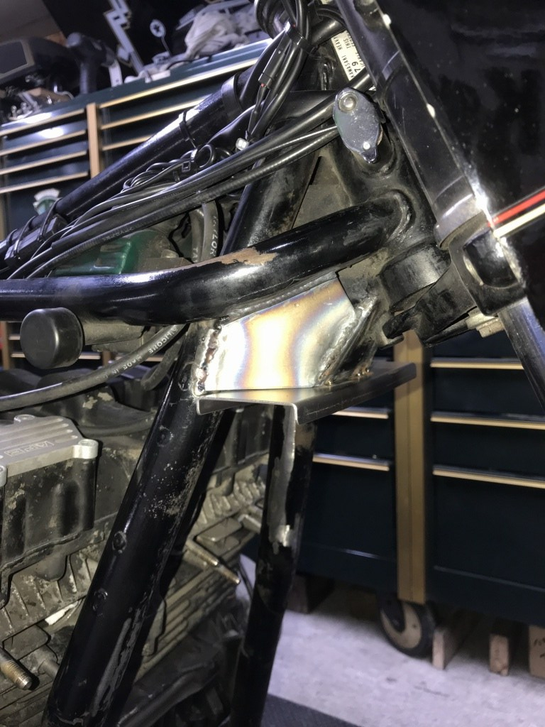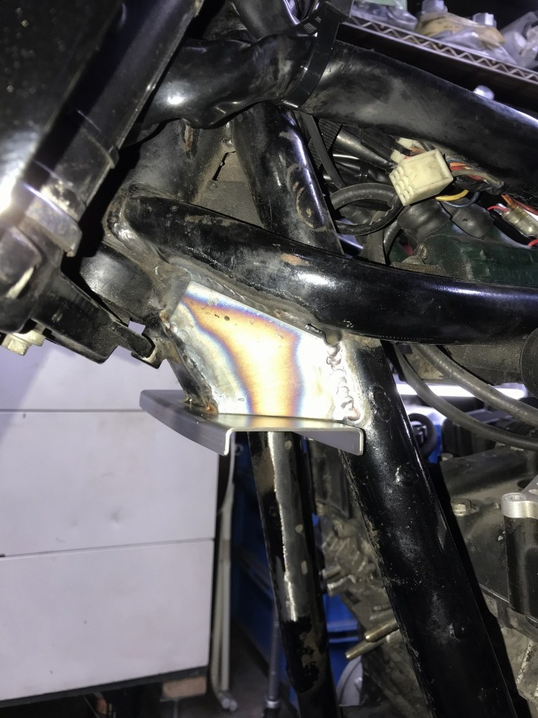 補強板をフレームとガセットの間に溶接します。