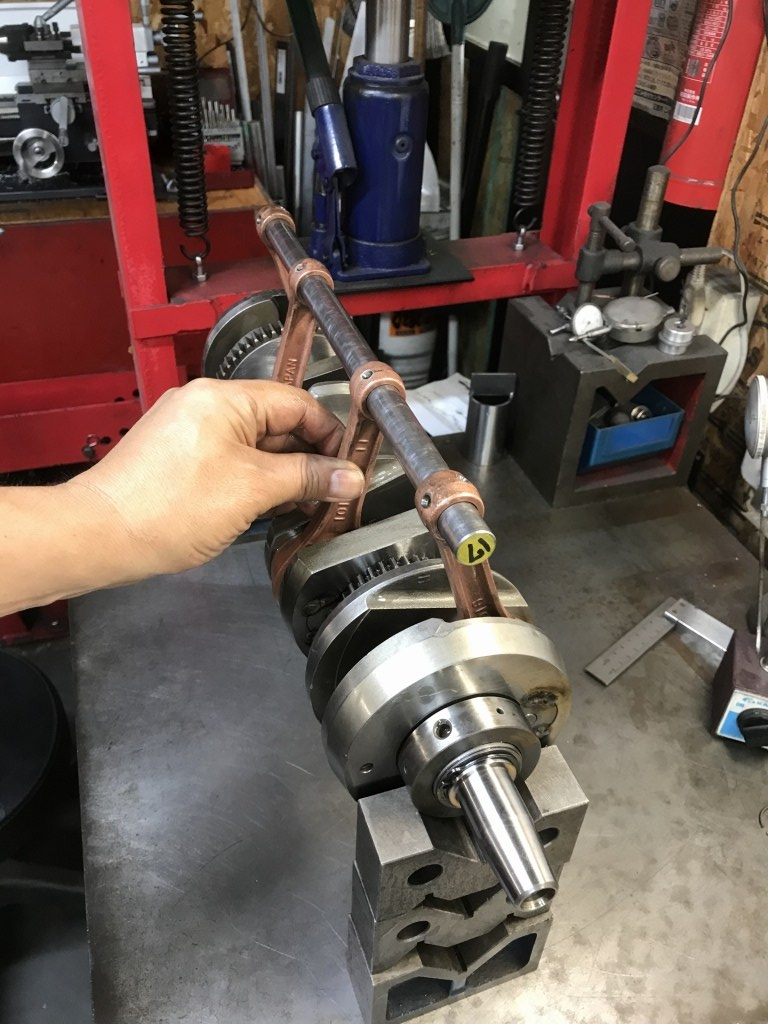 クランクもベアリングにガタがあったので、別のクランクをベースにビトーR&Dでフルリビルドしたものを使います。