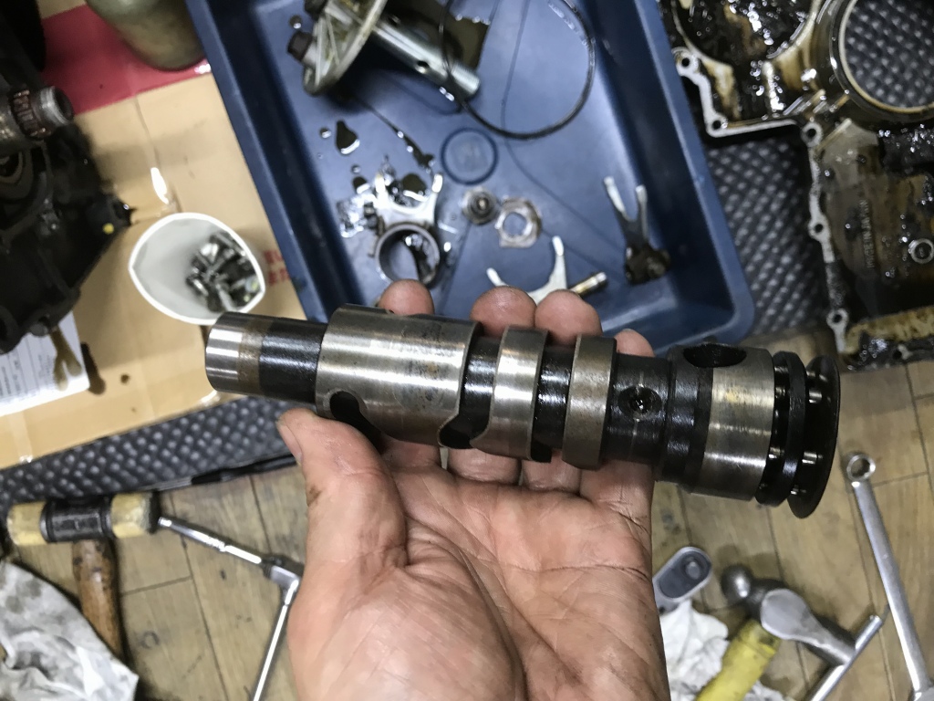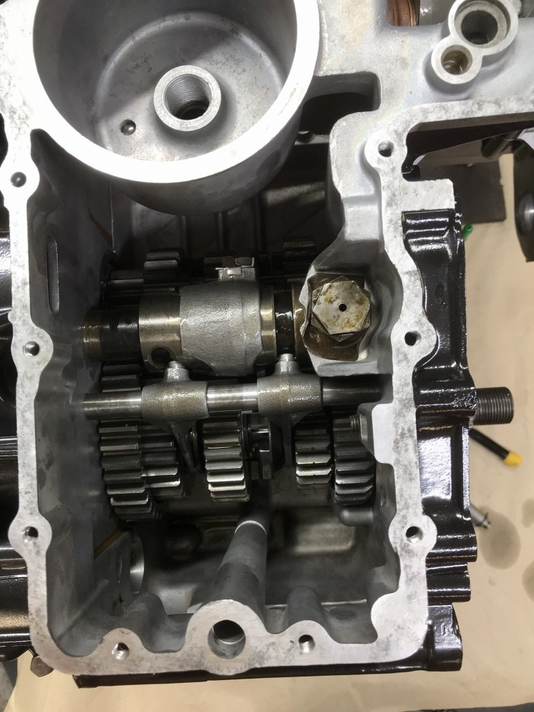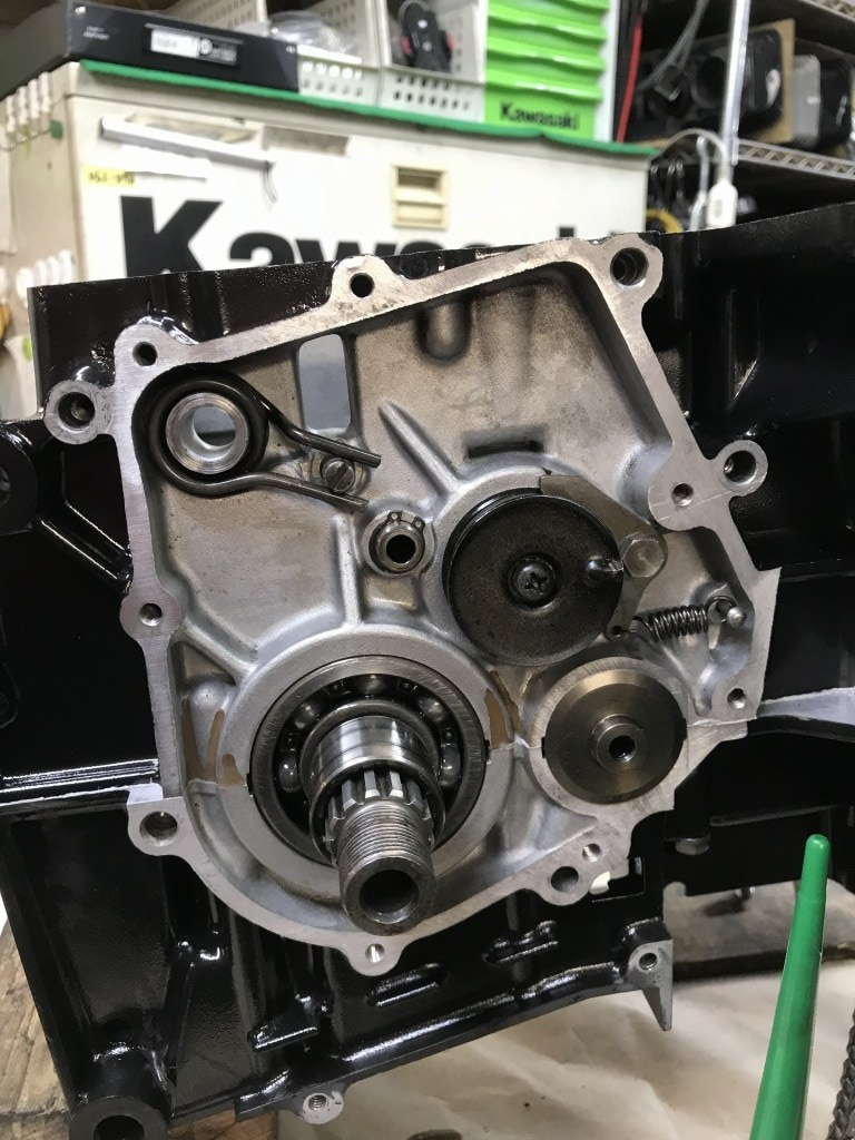 新しく使用するクランクケースが前期型なので、シフト周りが異なります。こちらのZ1のエンジンをドナーにして、シフトドラムなどを流用します。