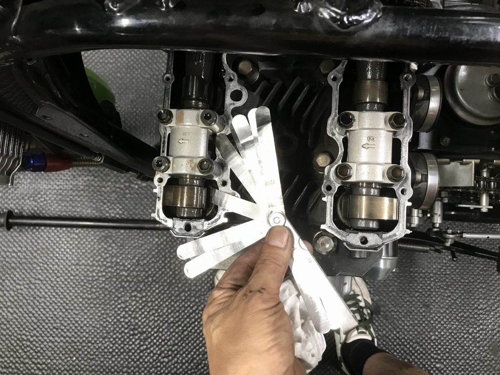 分解前にバルブクリアランスを計測します。特に異常ありません。