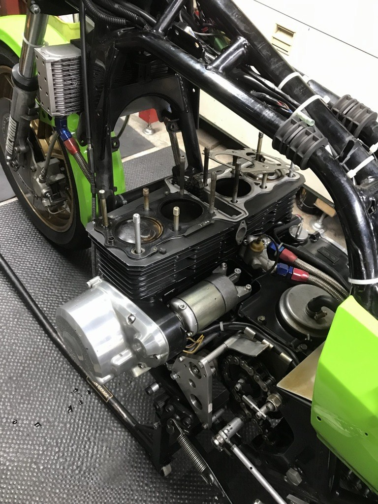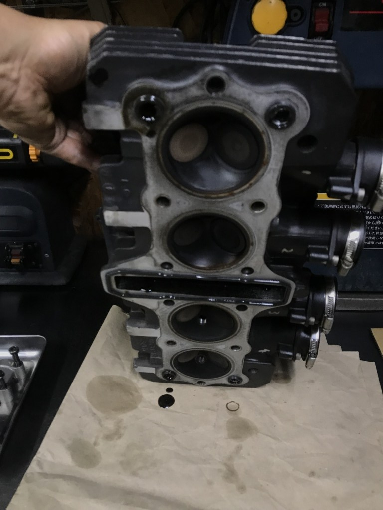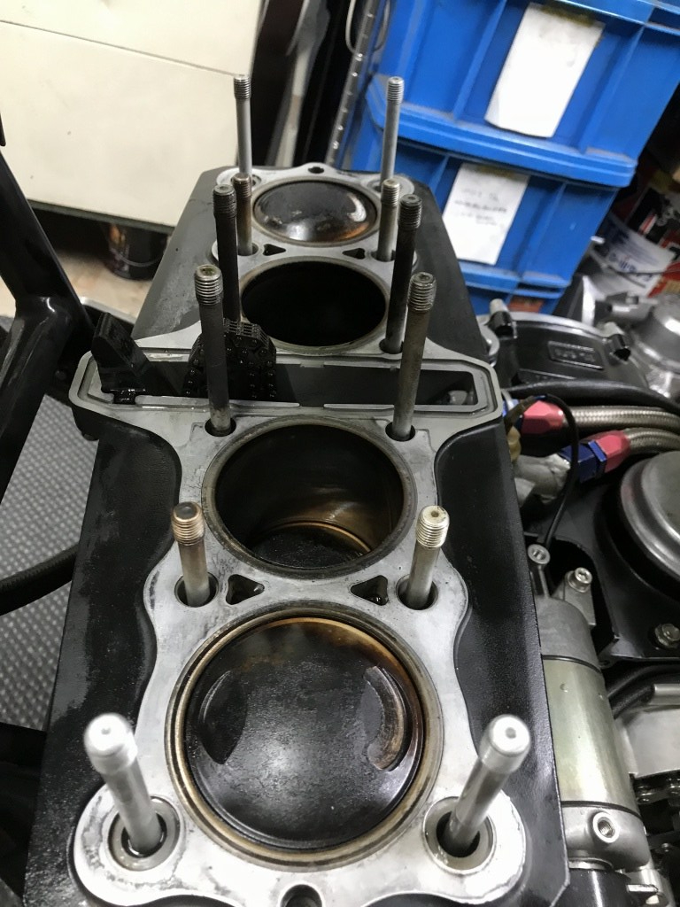 ピストンを仕様変更するので、エンジン腰上を分解します。