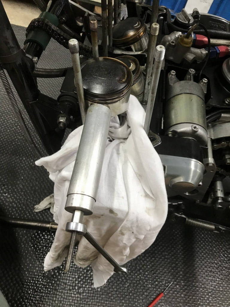 ピストンピンを外します。固い場合はプーラーで抜き取ります。