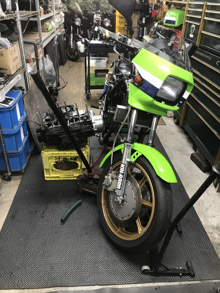 カバー類を外します。クラッチとミッションはGPZ1100純正を使用しています。