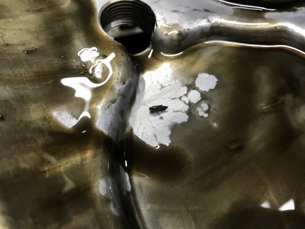 オイルパンを外し、異物がないか確認します。