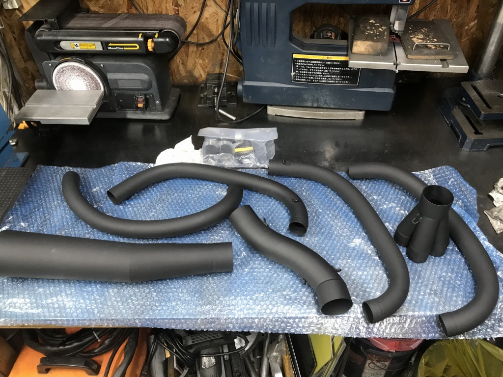 手曲げのエキパイを取り付けます。