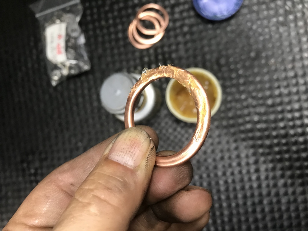 エキゾーストガスケットを交換しますが、セットする時はグリスを少量塗って貼り付けると、手軽で外した時にも何も残らないので便利です。