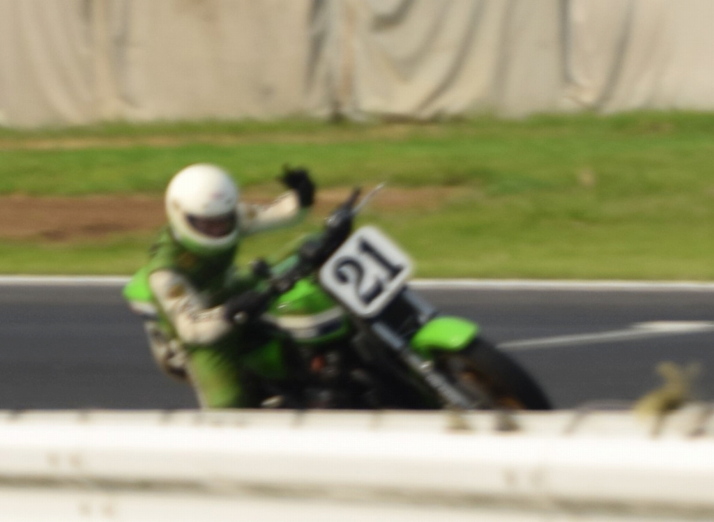 2回目の走行も、初めの5周を過ぎたら少しペースダウン。最終コーナー立ち上がりで、カメラに向かってピースサイン。