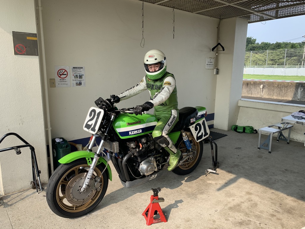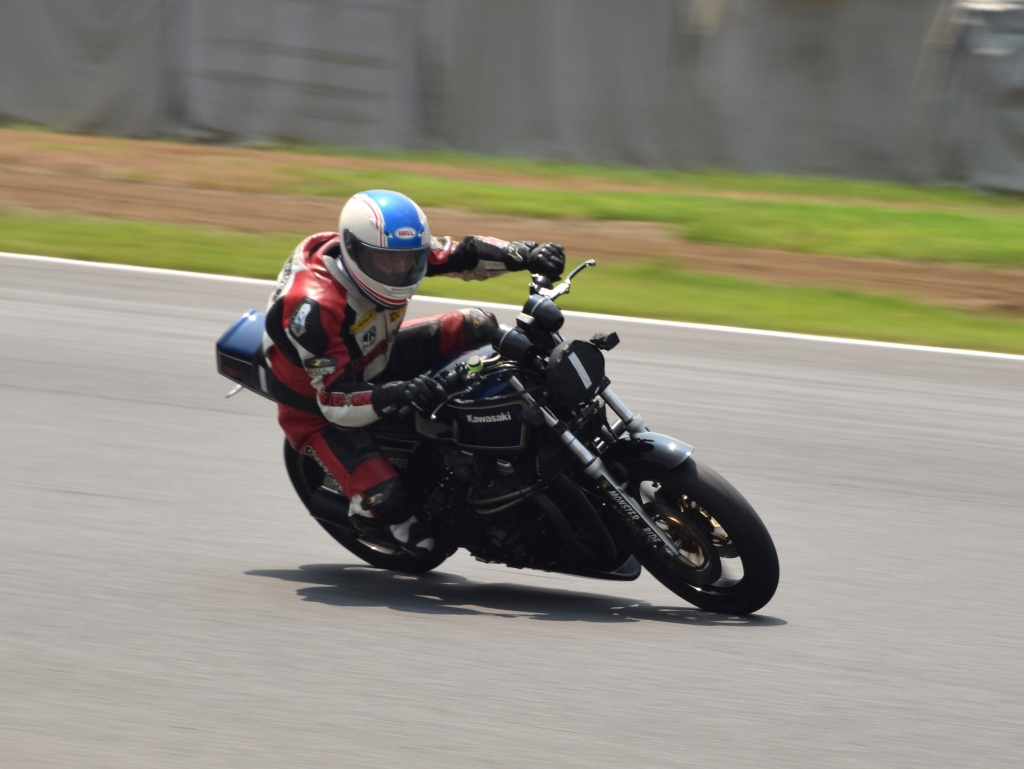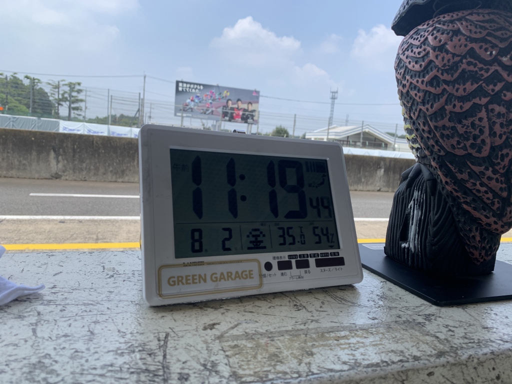 5周くらいまでは攻められますが、その後はエンジン油温が110℃を超えて軽いノッキングが始まるので少しスローダウンします。人間も暑さでオーバーヒート気味です。