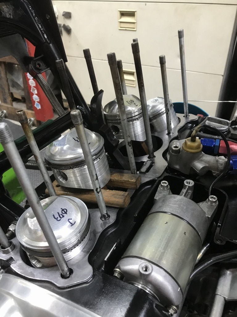 今回のピストンはS1タイプのこちら。実測の圧縮比は11.1:1、ボアはφ73ミリの1105ccです。