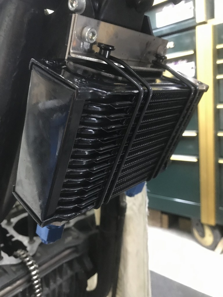 タイラップで固定されていたオイルクーラーは、適合するOリングを入手したので取り付けます。