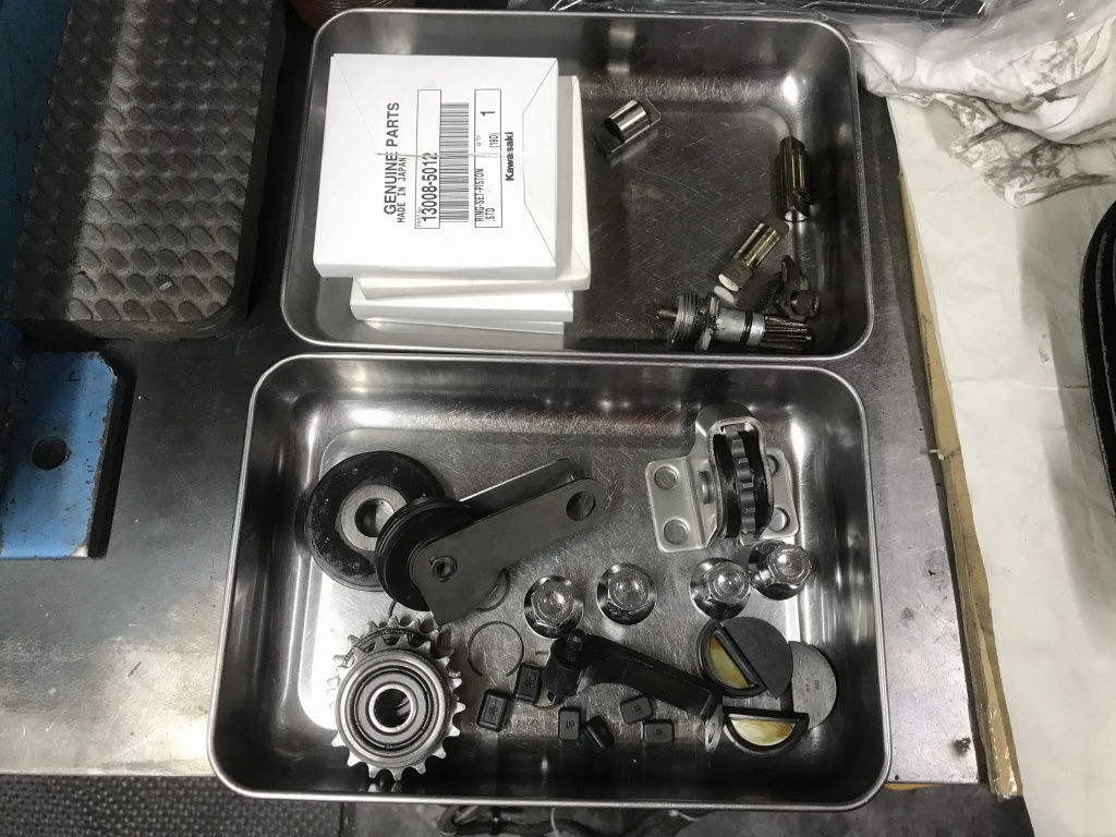 今回交換するエンジンの消耗品はこんな感じです。四角い箱はピストンリングです。