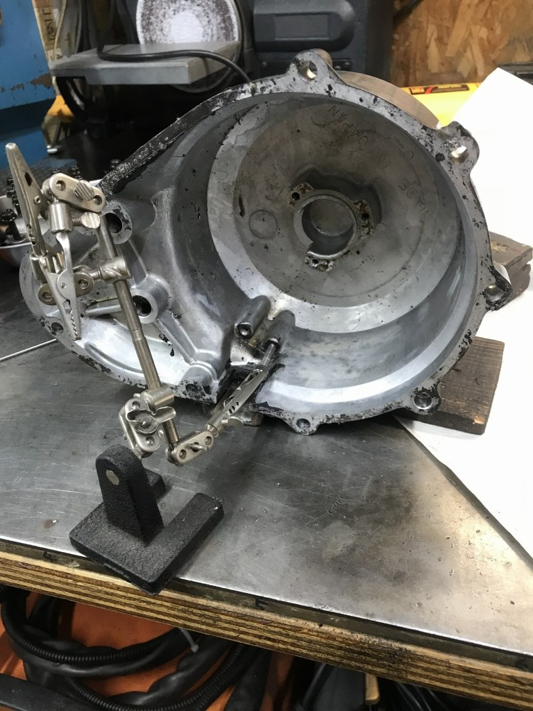 ハーネスガイドのところは短いのでボルトを溶接して外します。