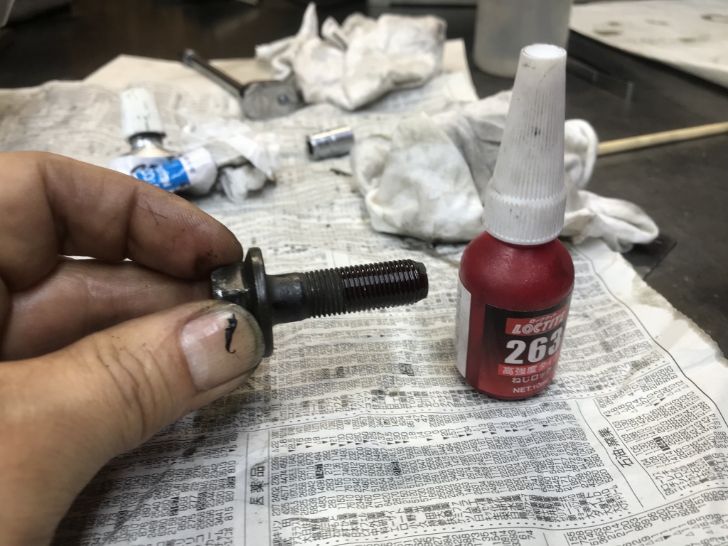 ジェネレーターローターのボルトも緩み易いのでネジロックを塗布します。