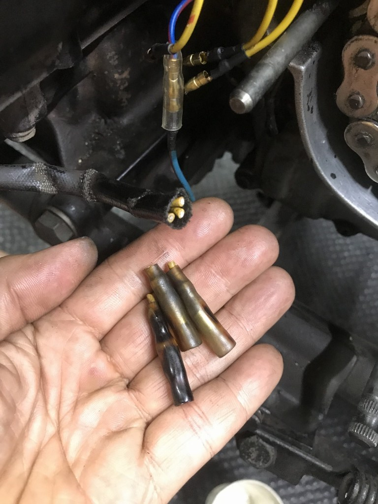 ジェネレーターハーネスのギボシは焼けているので交換します。