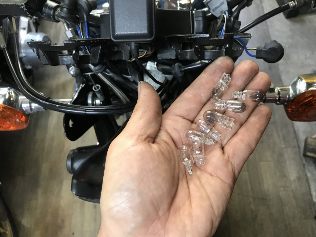 メーター照明のバルブは黒ずんでいたので新品に交換しておきます。