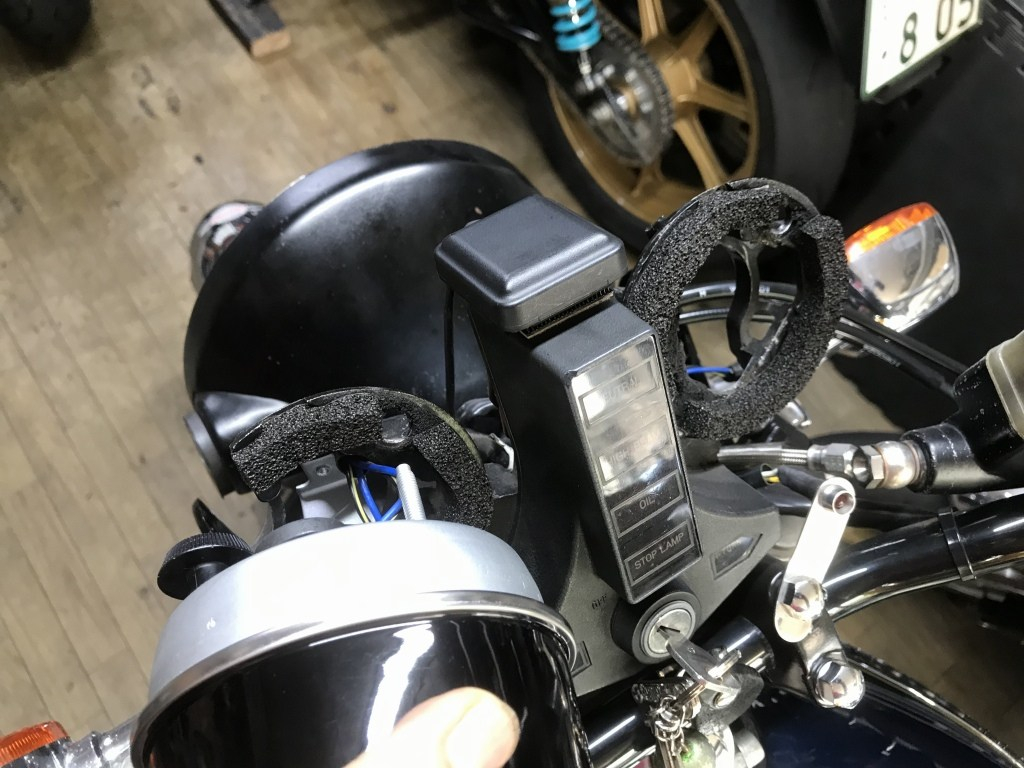 メーターブラケットのスポンジは完全に潰れてしまっています。