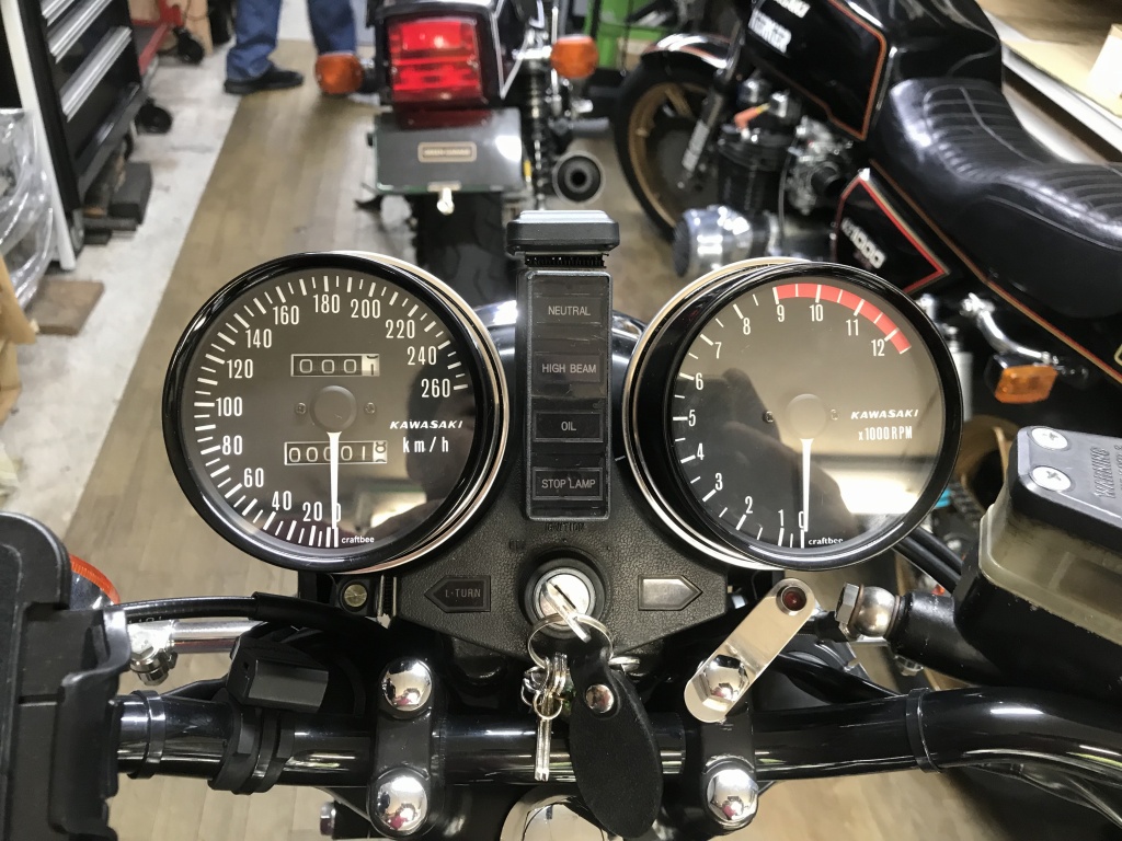 現状のスピードメーターはマイル計、タコメーターは始動直後は不動でしばらくしてから動き始める状態です。