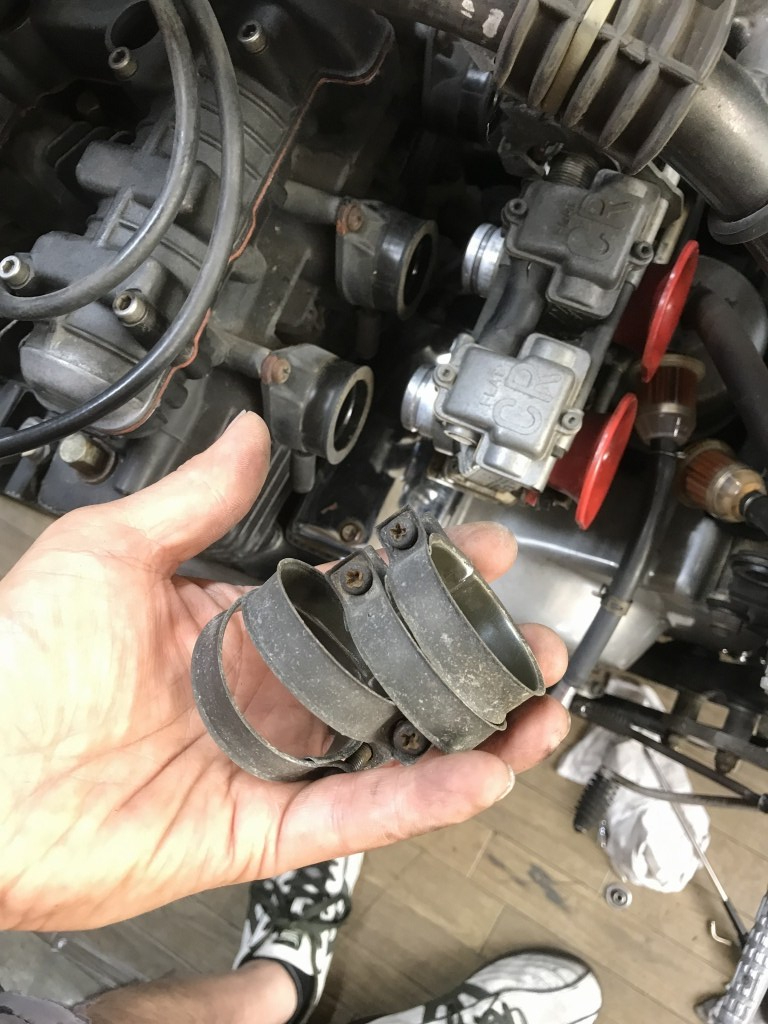 キャブホルダーのバンドは完全に締めきるまで変形しているので交換することに。