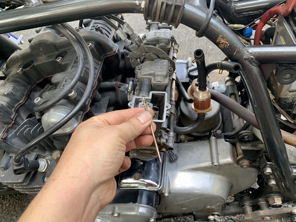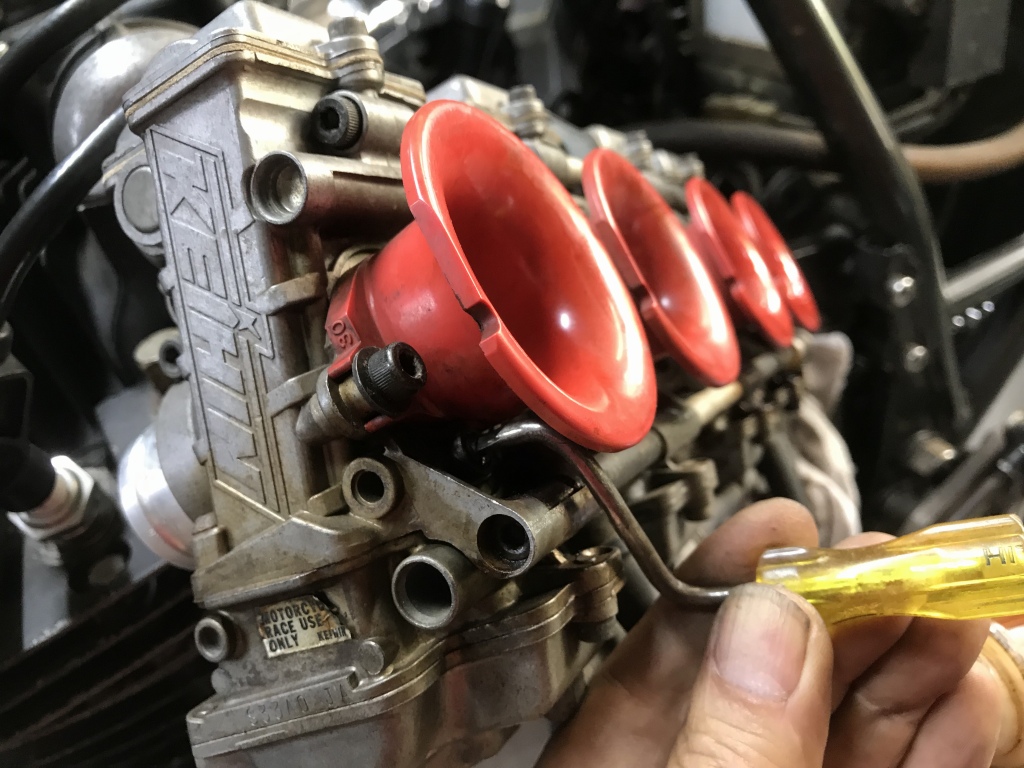 キャブ調整のご依頼です。最近、FCRのセッティングが不調になってきたとのことです。現在の仕様になってから20年、5万キロほど走行しているそうです。
