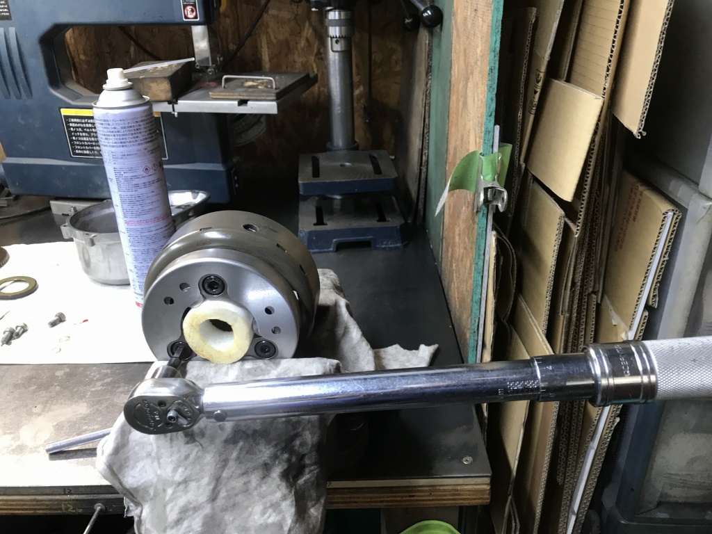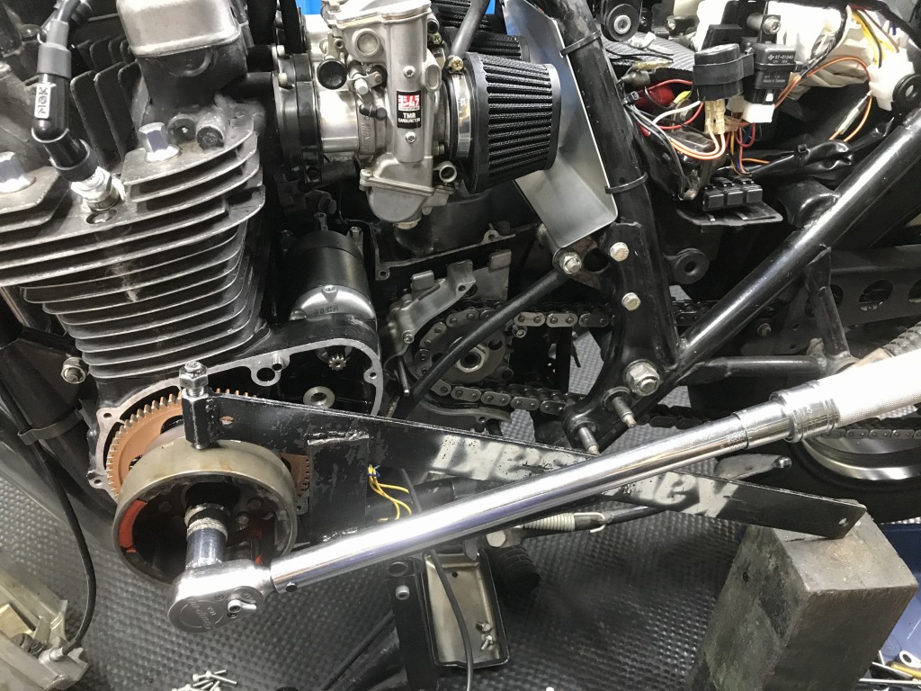 スタータークラッチの取り付けボルトは、高トルクで締めるのでこちらも新品交換します。