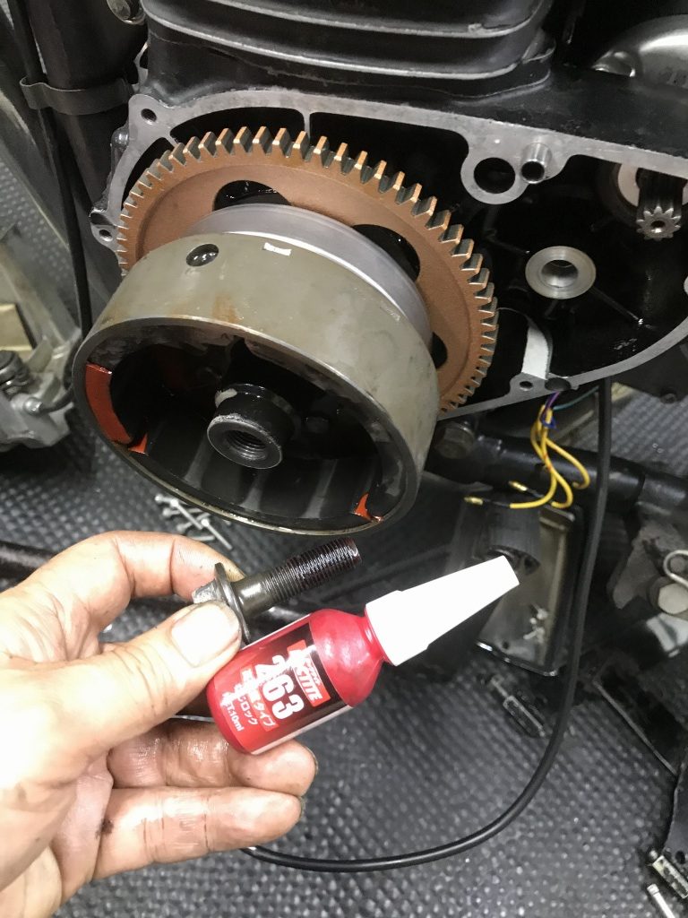 ジェネレーターローターのボルトも、ネジロックを塗布します。