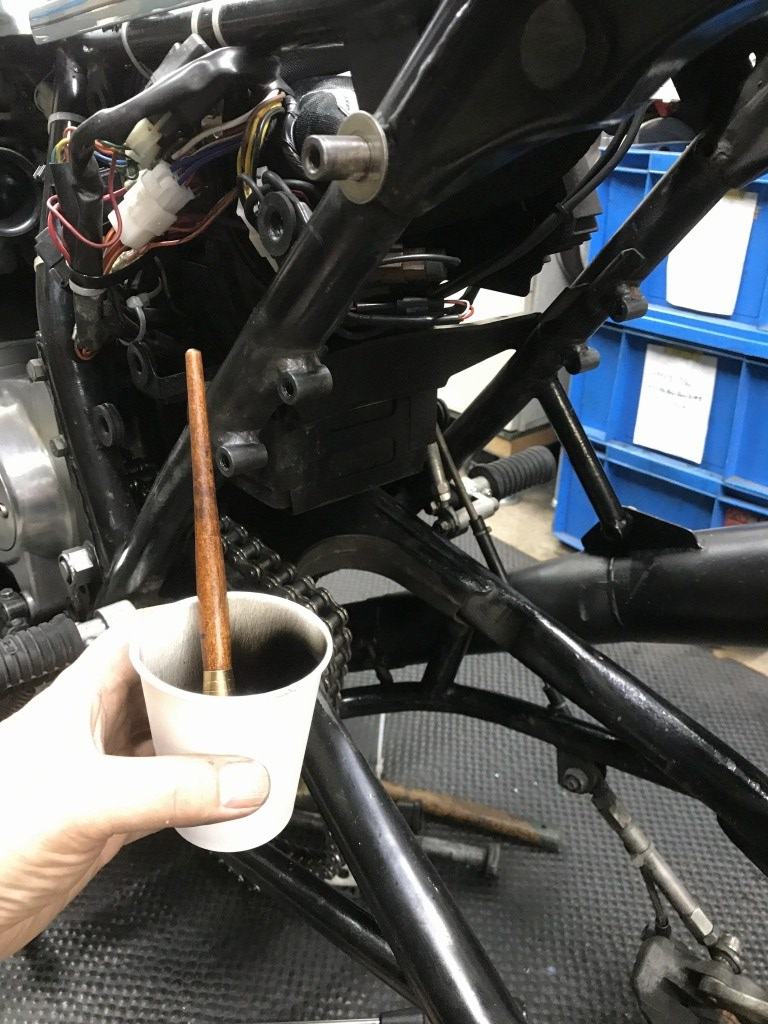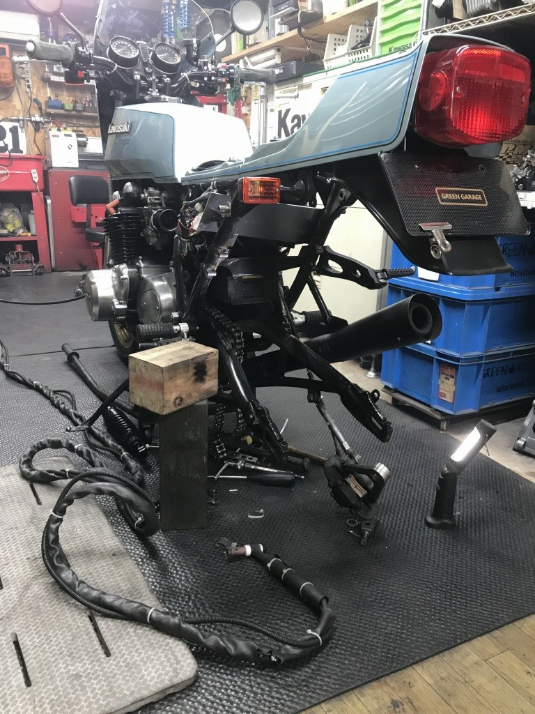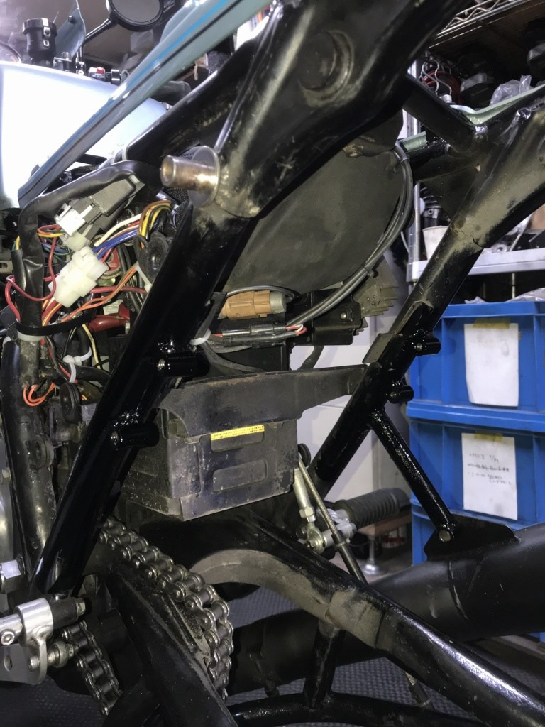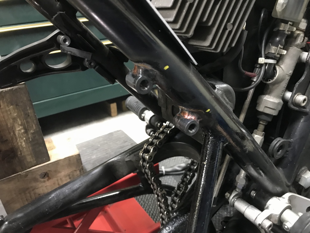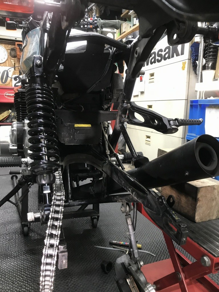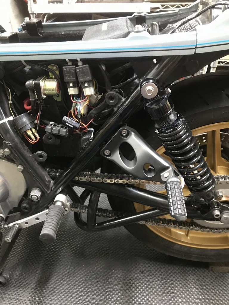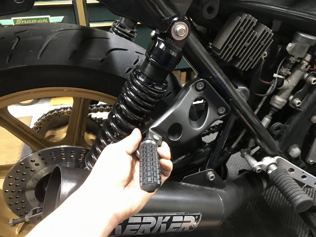 タンデムステップは削除してありましたが、再び装備するとのことで、加工して取り付けます。