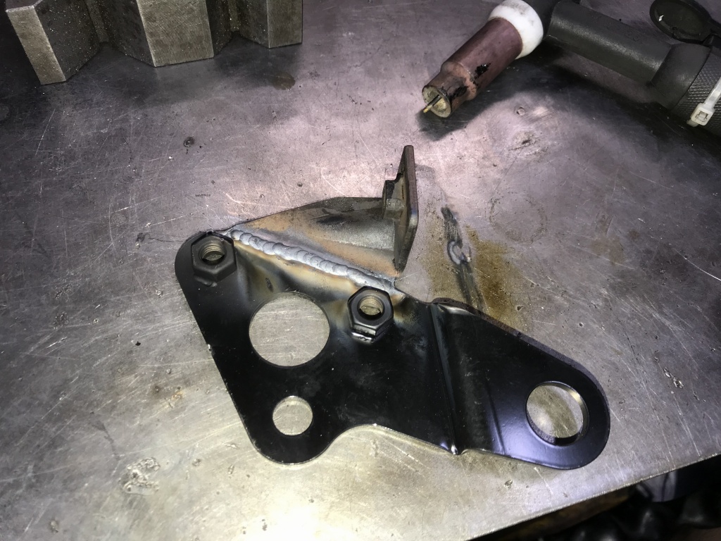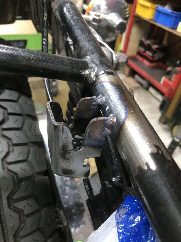 切り取ったブラケットを使い、位置をずらして溶接します。