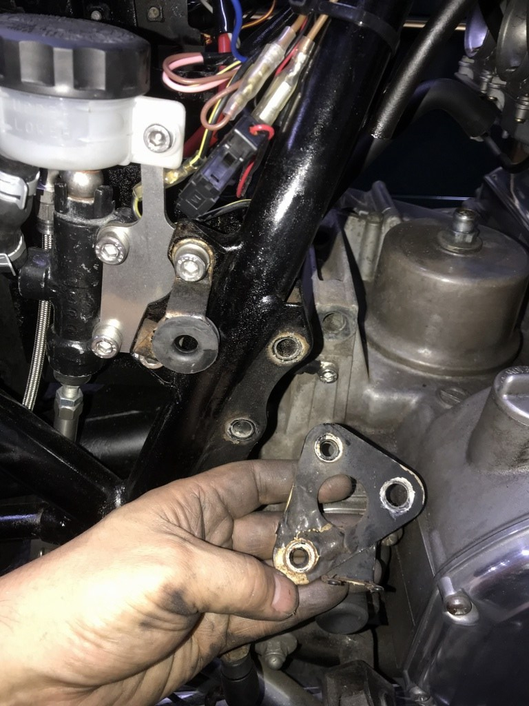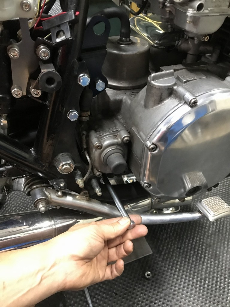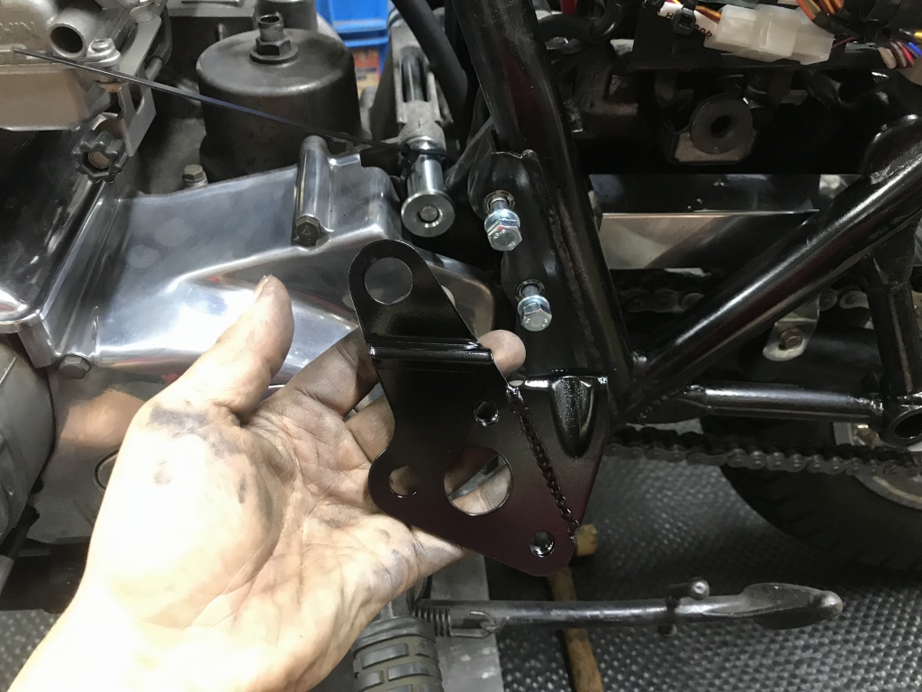 Z1サイドカバー取り付けに当たって、リヤ側のエンジンマウントブラケットをZ1タイプに変更する必要があります。ついでなので、マウントボルト共々PMC製の新品に交換することに。