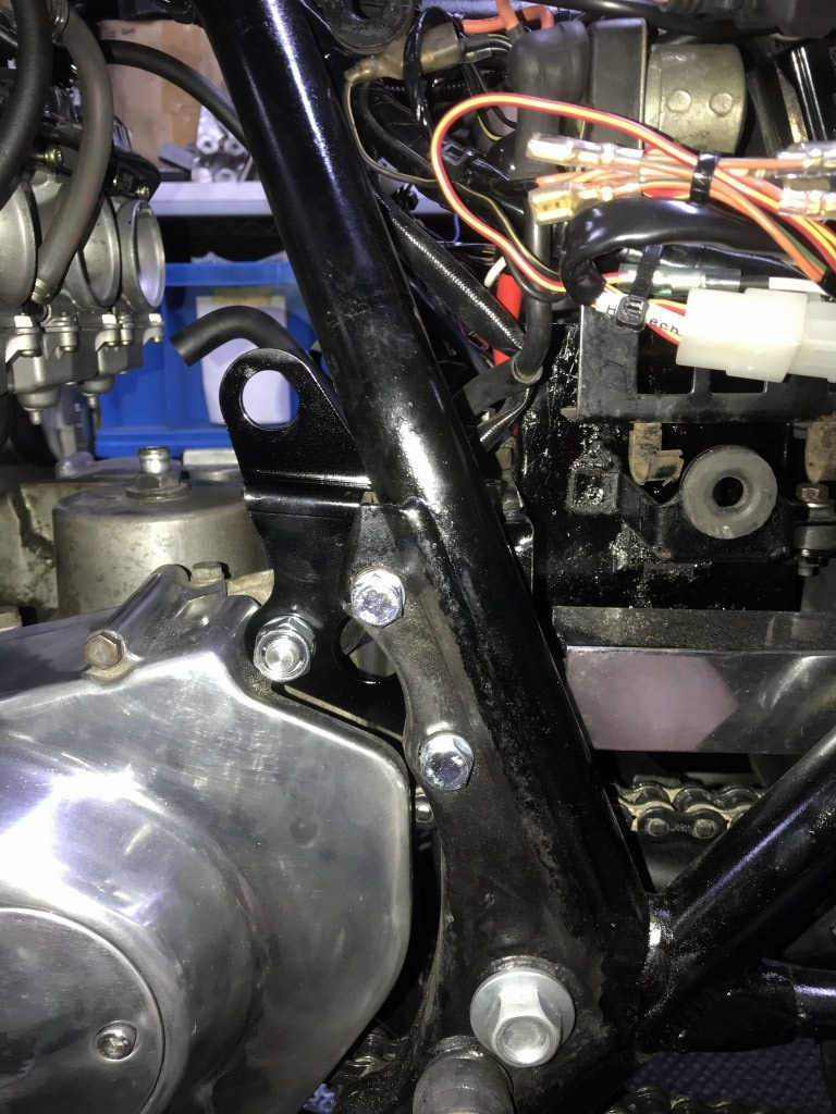 リヤ側のエンジンマウントブラケットは、Z1タイプにはバッテリーブラケットの受けがありません 。