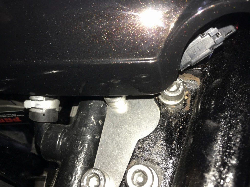Z1サイドカバーの突起とフレーム側のブラケットは位置が若干異なります。フロント側を基準に嵌めてみます。