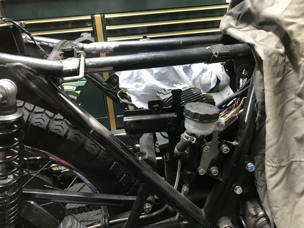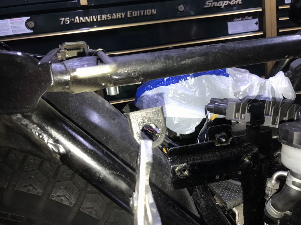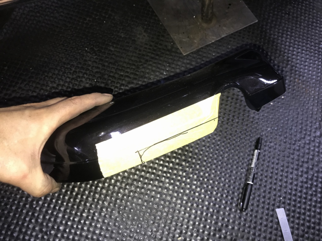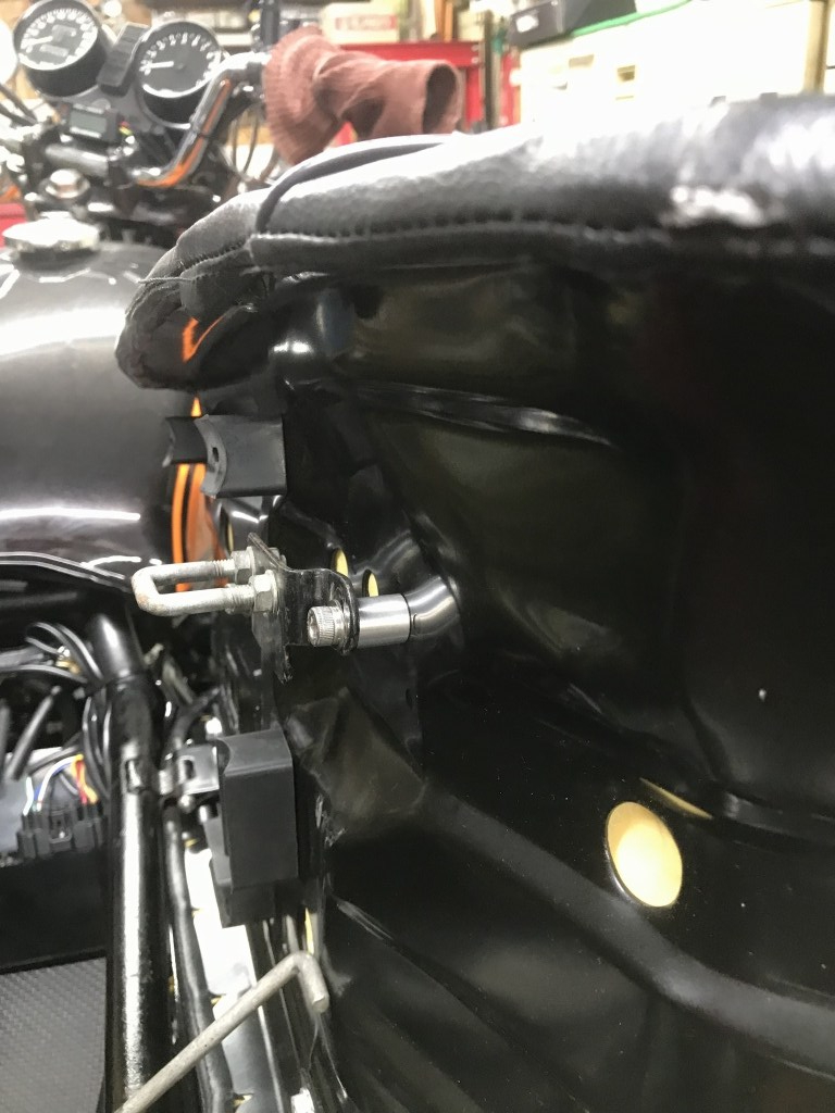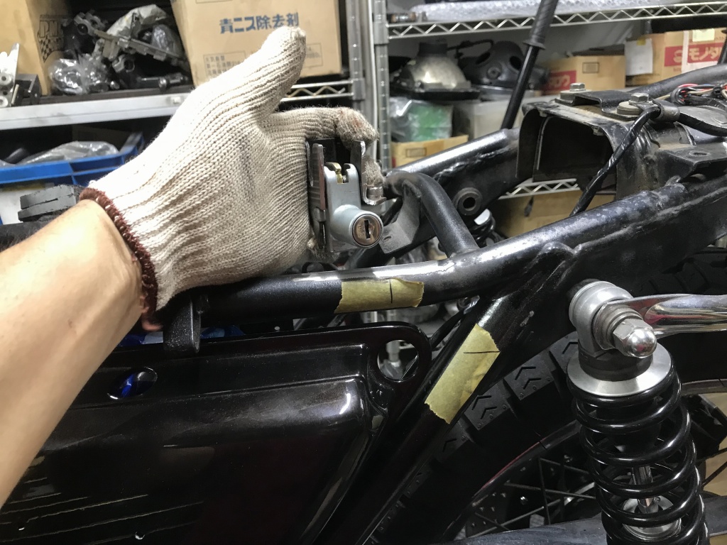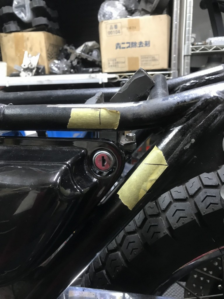 サイドカバーを仮付けし、シートロックブラケットの位置を割り出します。