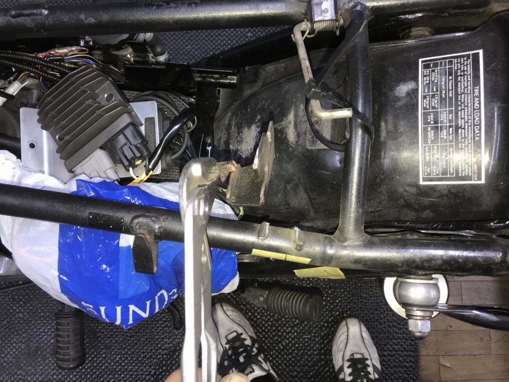 左サイドカバーの下側にあるA2用サイドカバー受けは不要になり 、Z1型のサイドカバーと干渉するので削除します。
