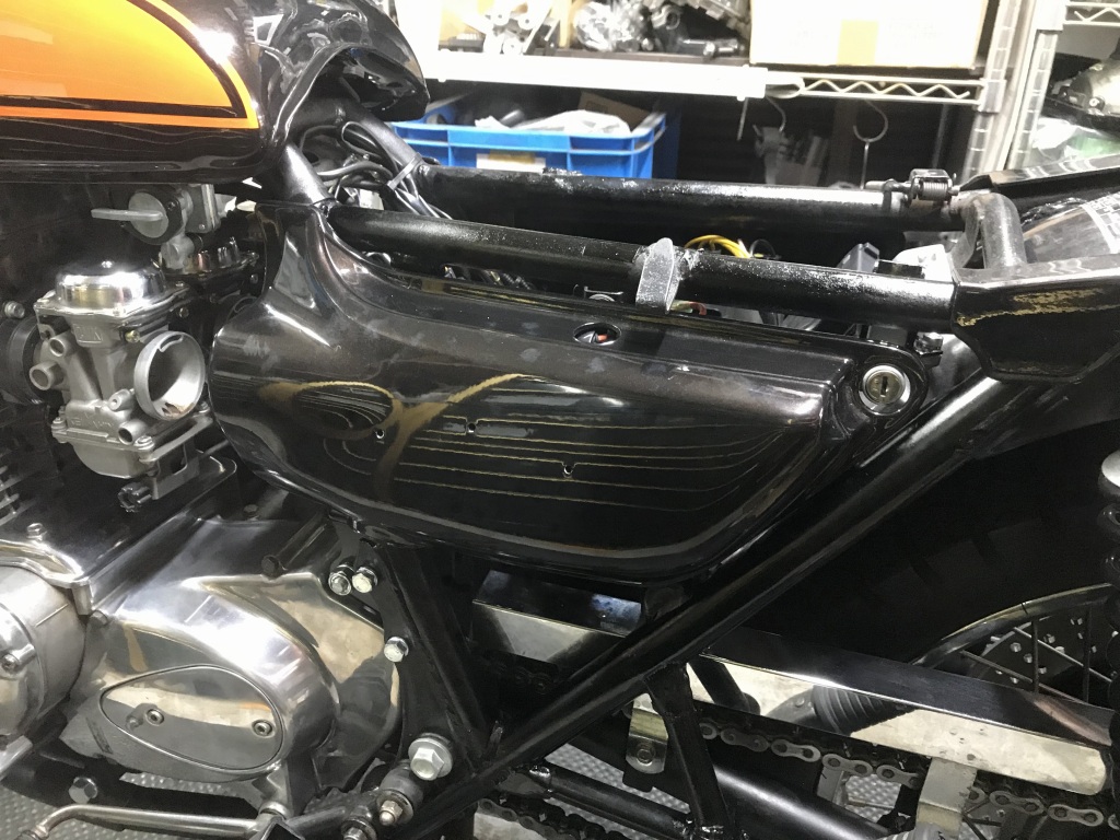 これで元からの火の玉タンクとテールに合わせ、サイドカバーもZ1となりました。