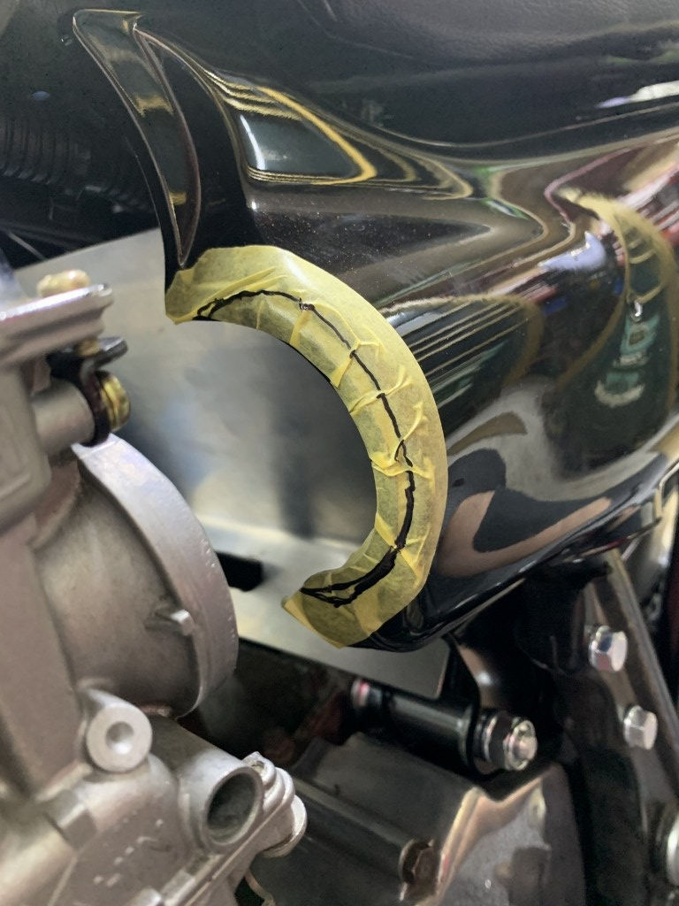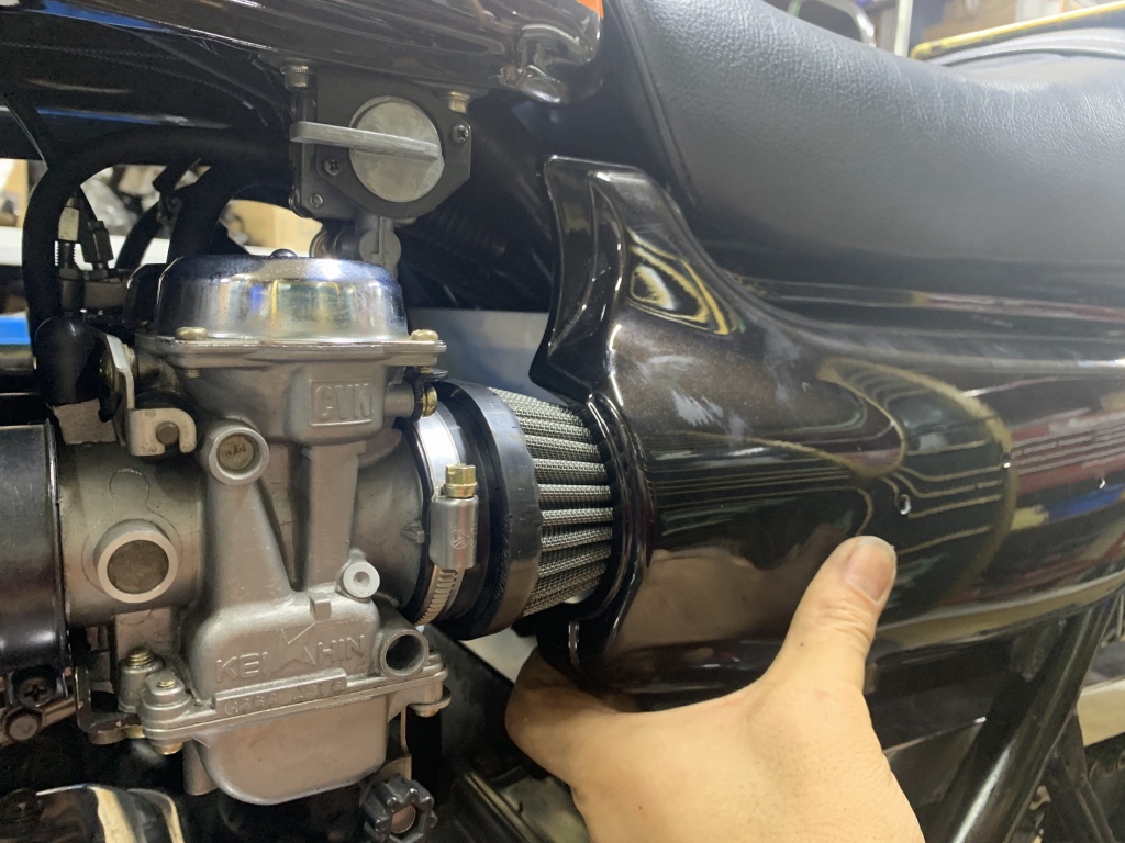 CVKキャブが付いており、口径が大きいのでパワーフィルターがサイドカバーに干渉します。