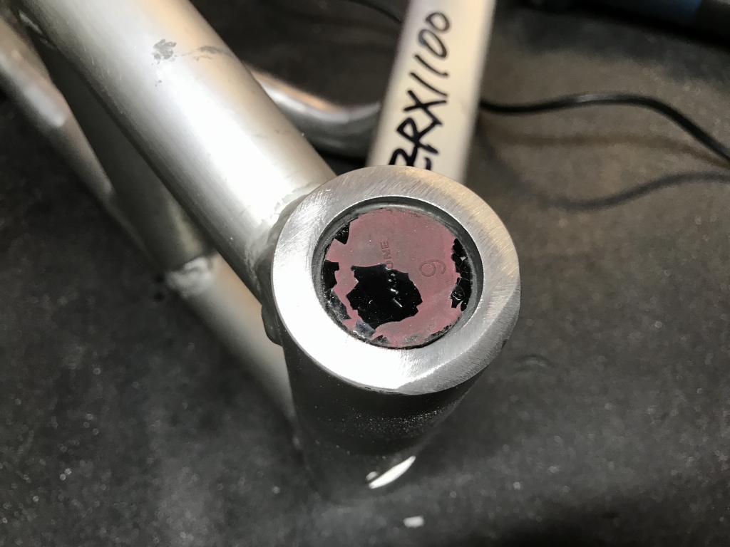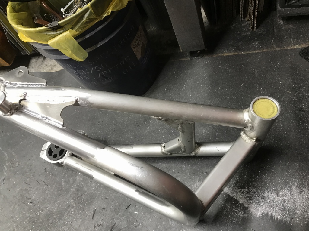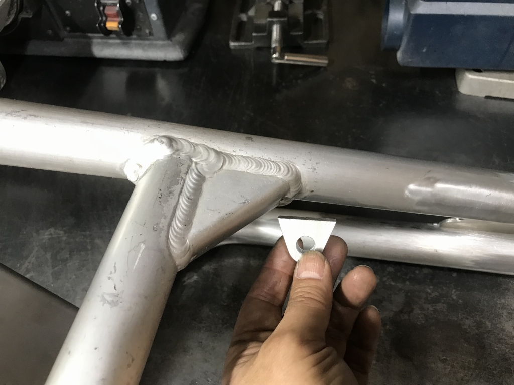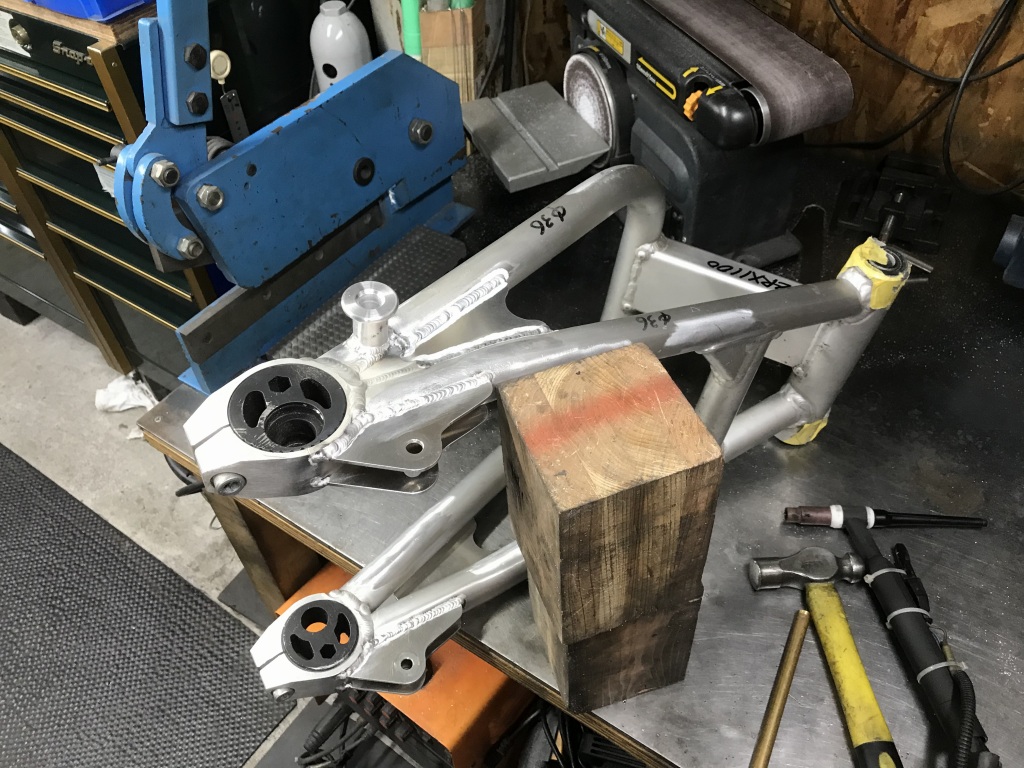 トルクロッドの受けはまだ付けていないので、取り付ける車両に合わせて位置を決めて溶接します。