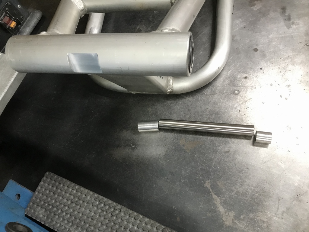 塗装以外はこれで一応完成です。基本的にボルトオンで取り付け可能ですが、リヤサス受けの左右スパンは20ミリ広がるので、フレーム側は左右それぞれ10ミリのスペーサーでサスをオフセットさせて取り付けます。