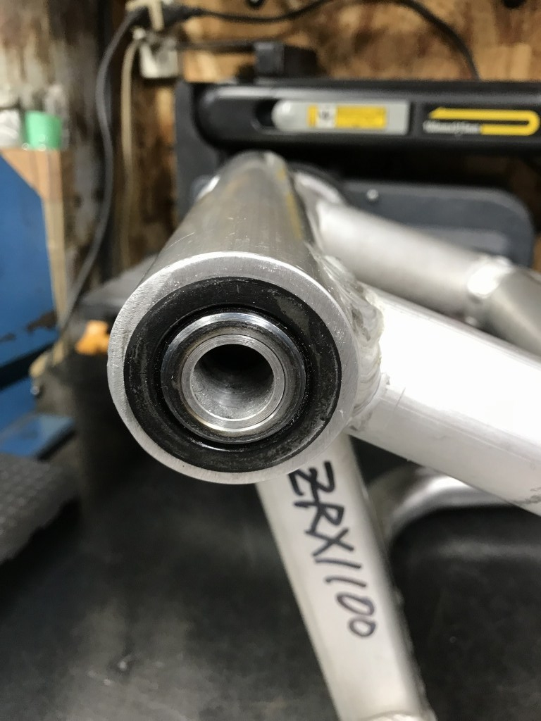 内径補正のカラーを入れるとこんな感じ。オイルシールはZRXの純正がそのまま付きます。