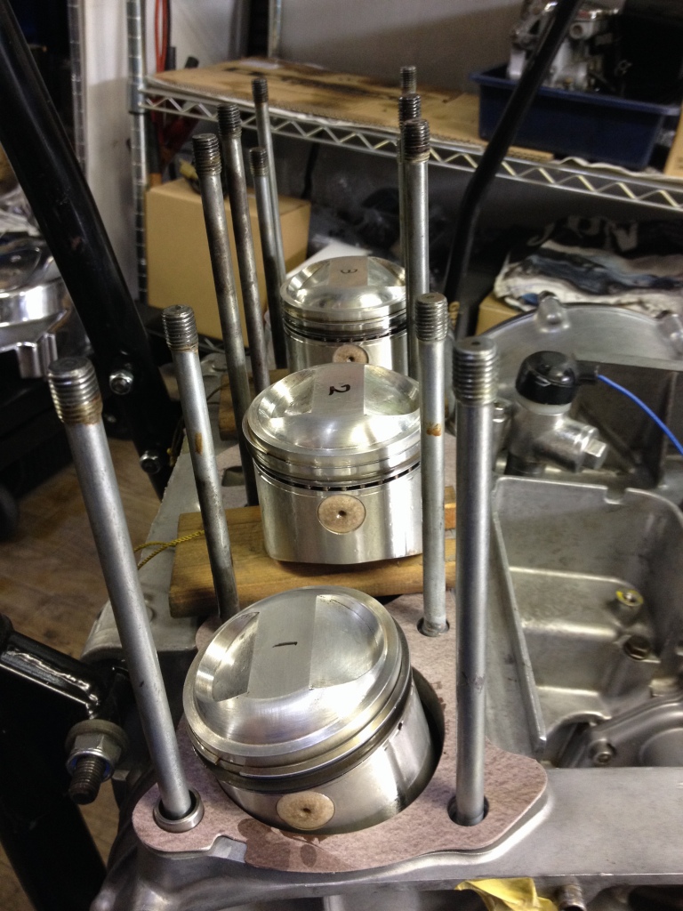 こちらは2014年10月にエンジンオーバーホールした時の画像です。ミッションのアウトプットシャフトのスプラインが欠けていたので交換する必要があり分解しています。ピストンは初めからこれが入っていました。